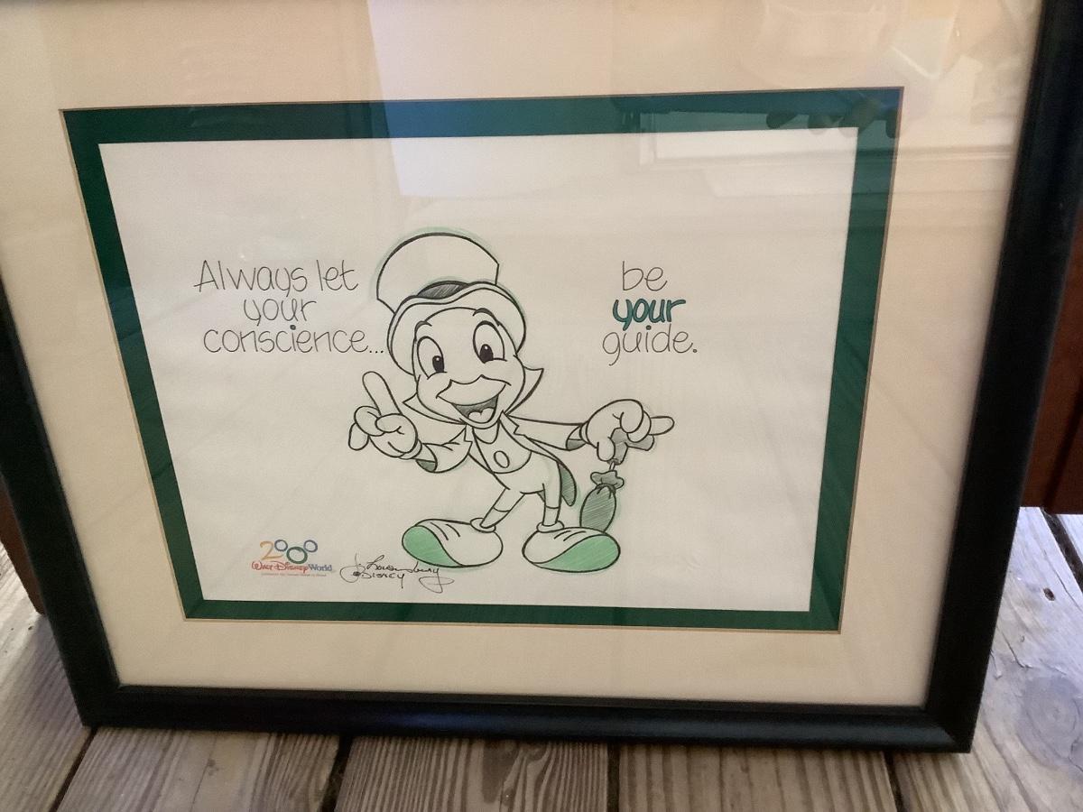 Jiminy Cricket double matted ands framed