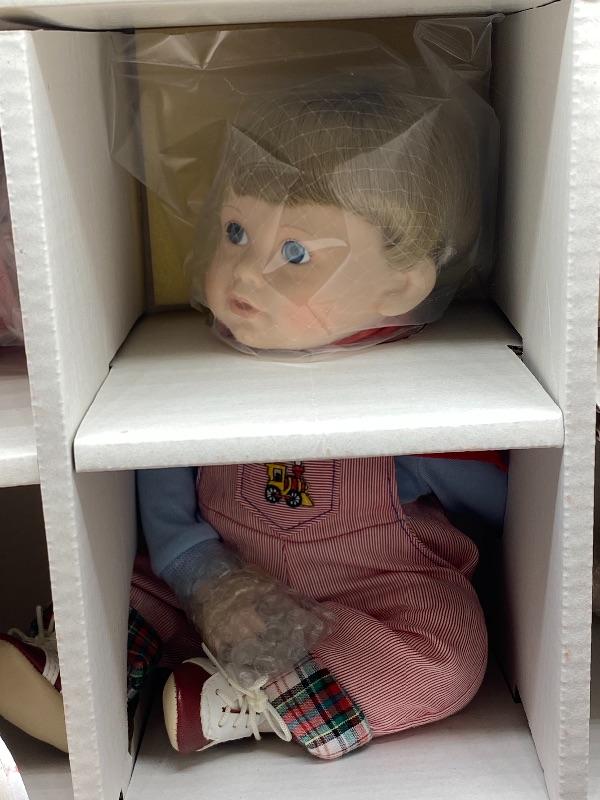 Jimmy by Elke Hutchens & the Danbury Mint. Porcelain doll, never removed from box. Doll sits at about 10" tall.