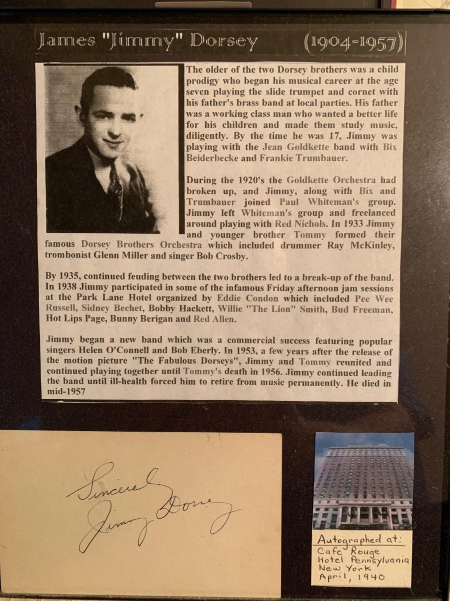Jimmy Dorsey Autograph Hotel Pennsylvania NYC