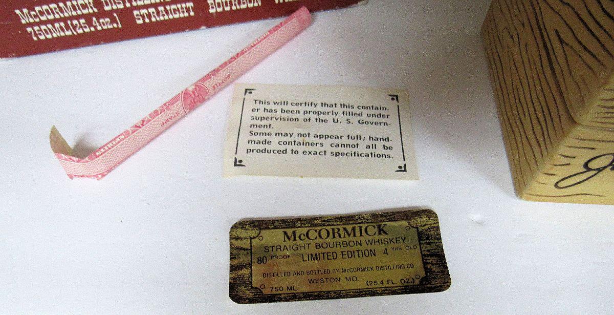Jimmy Durante Liquor Bottle Music Box, JD McCormick, Limited Edition 4 Year 80 Proof Burbon Whisky