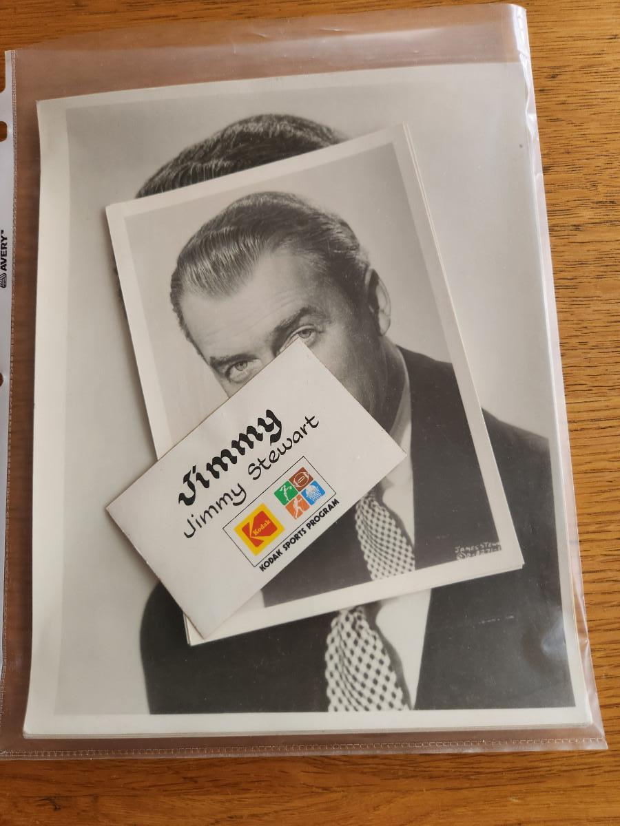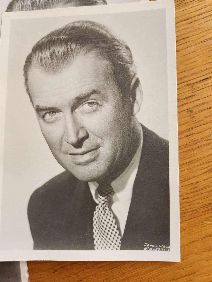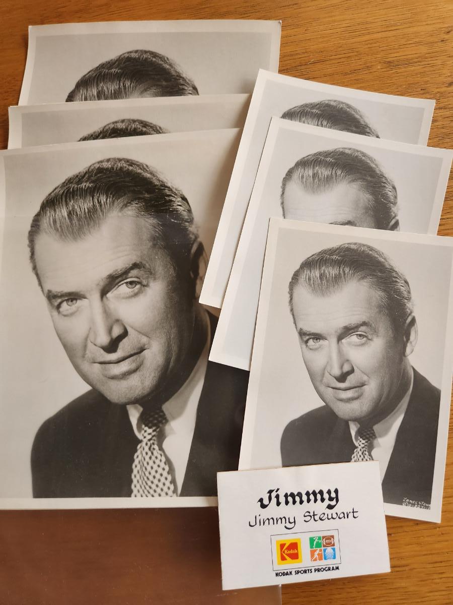 This auction lot is for a grouping of Jimmy Stewart Photos & Badge. The offering includes 6 of the 8 X 10-inch photos and 3 of the 5 X 7-inch photos and one name badge. From the Ward Harrison Estate - a well-known Hollywood memorabilia collector.