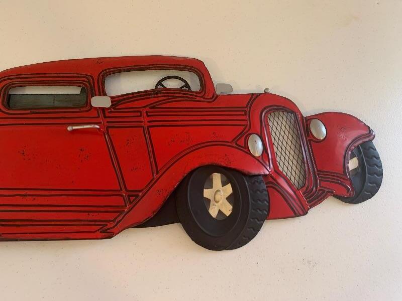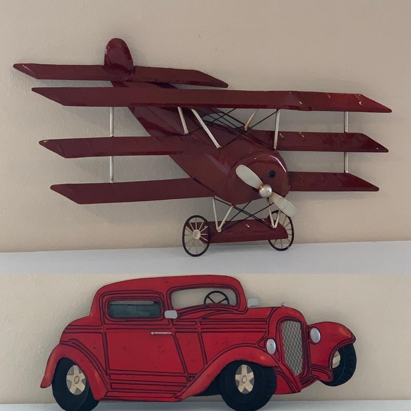 Replica of Lightweight Metal WWI German Fokker and Replica Old Red Car