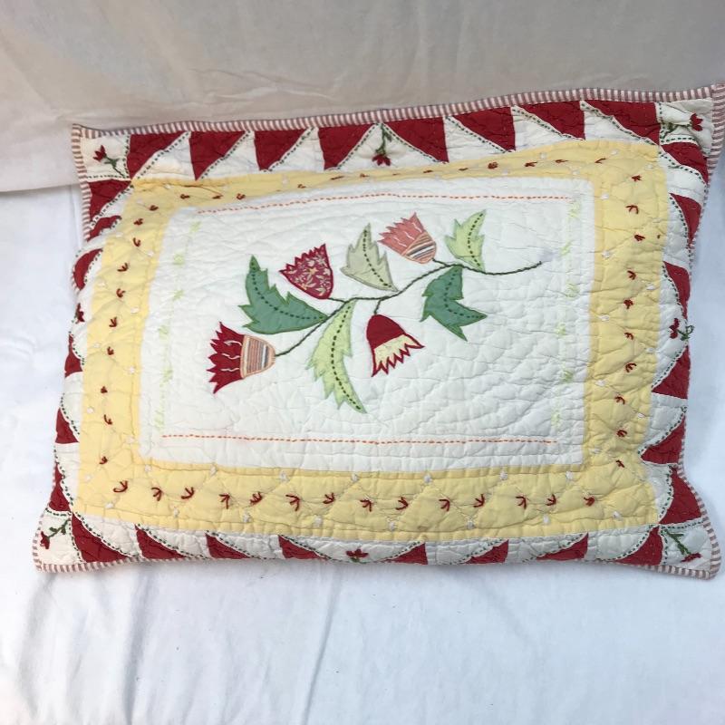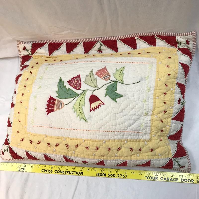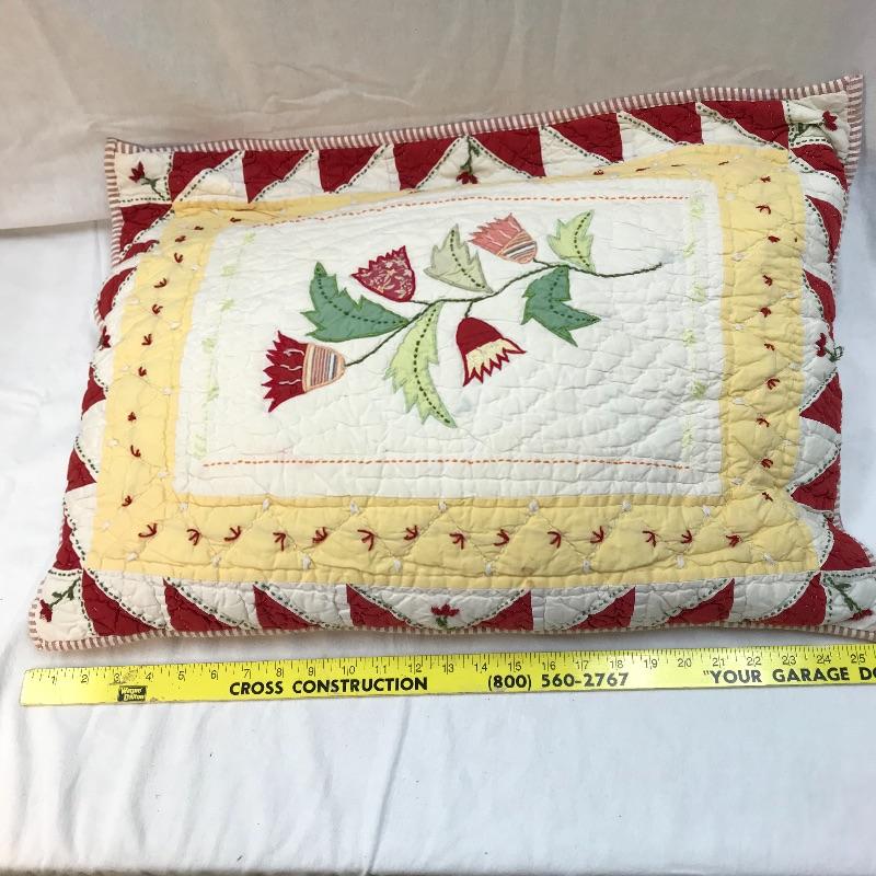 Quilted pillow cover and pillow. Good condition, very clean. Approx 24” x 17” x 5”.
