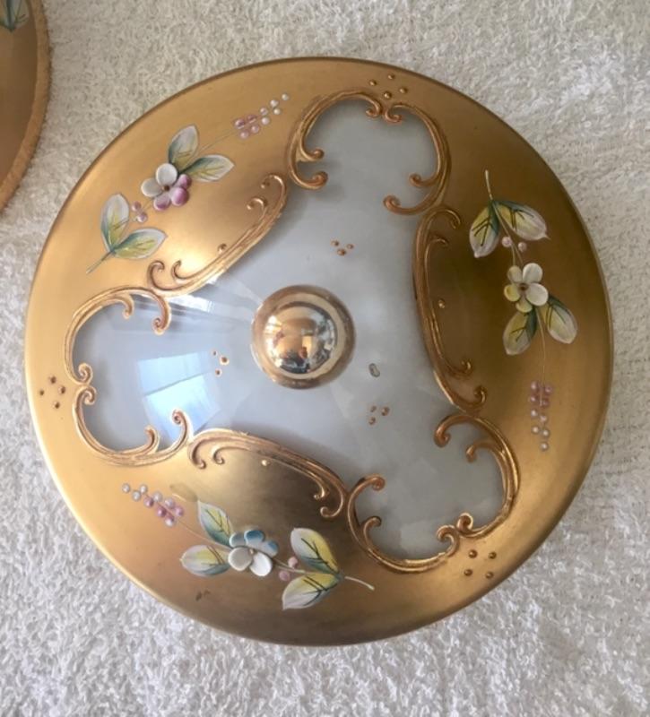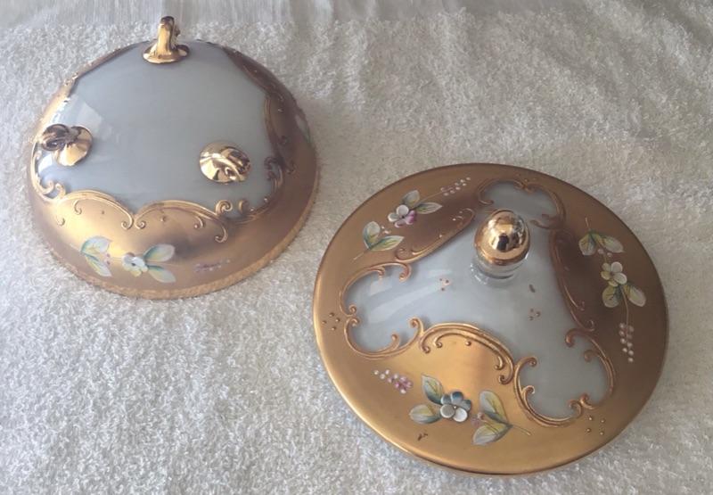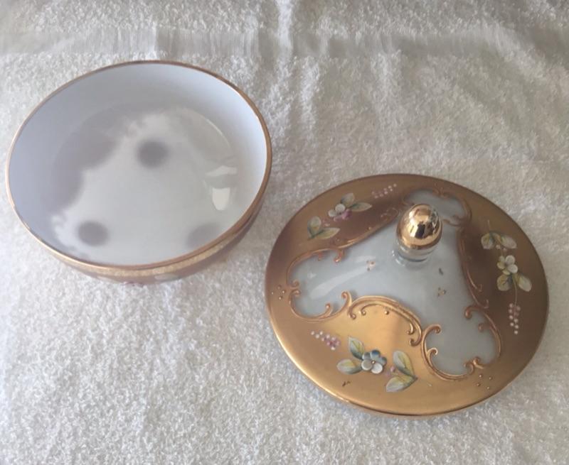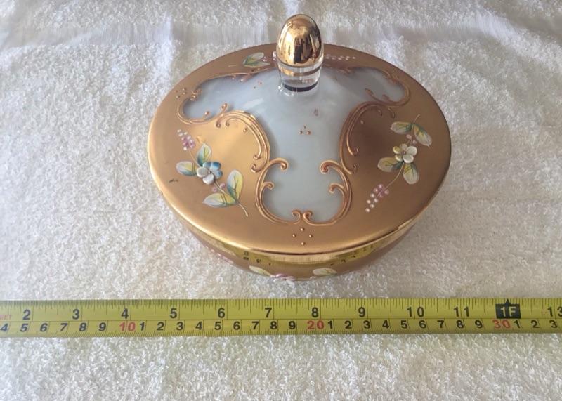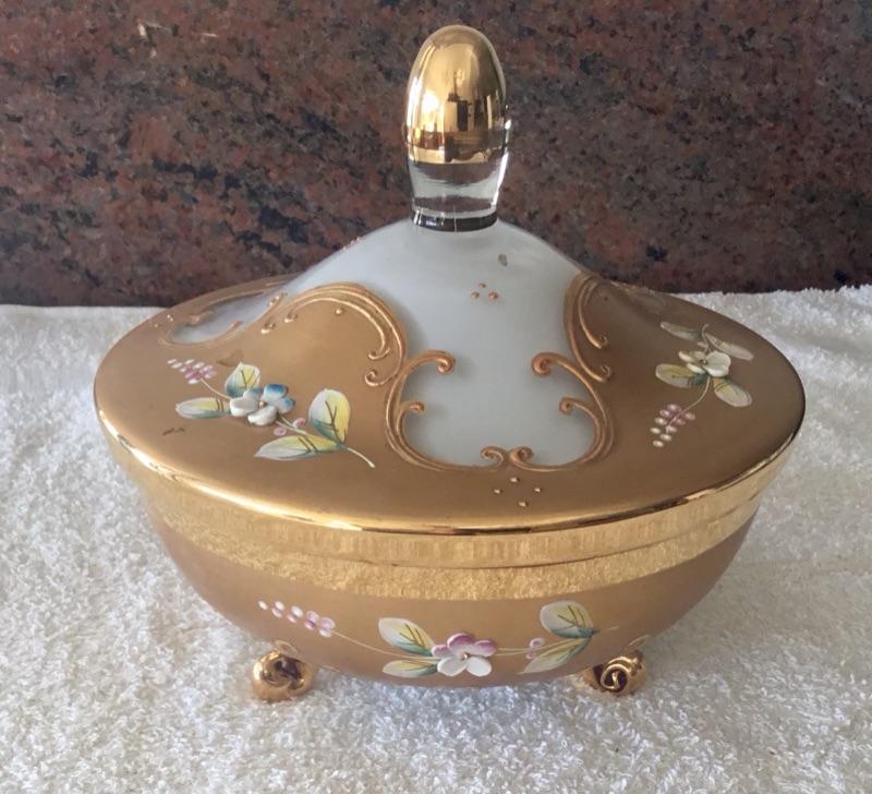 Gold Gilt Hand Painted Flowers Lidded Trinket Dish Murano YD#022-0181