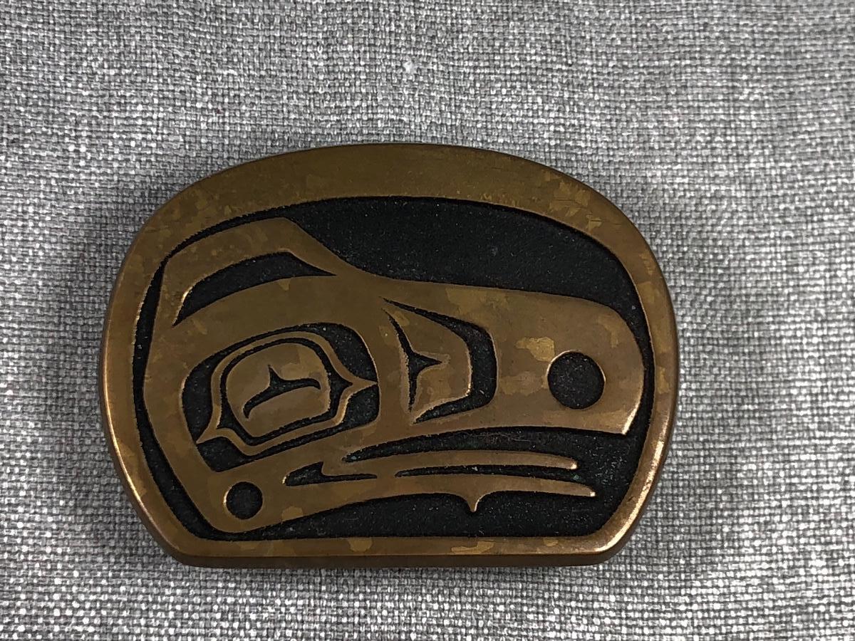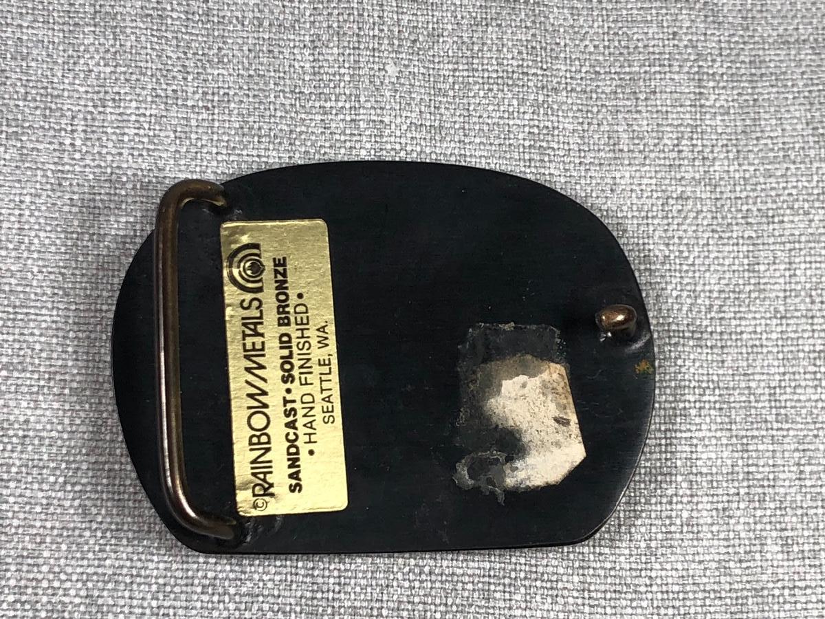 Tribal style bird bronze belt buckle. Made by Rainbow Metals. Good condition.