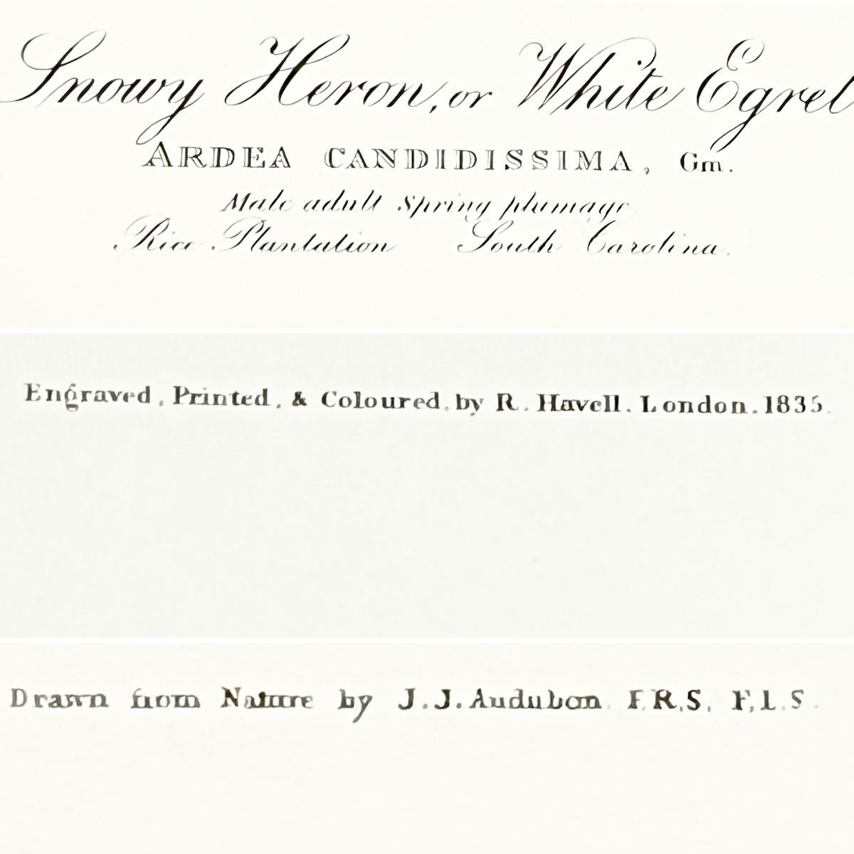 JJ AUDUBON ~ Snowy Heron, Or White Egret