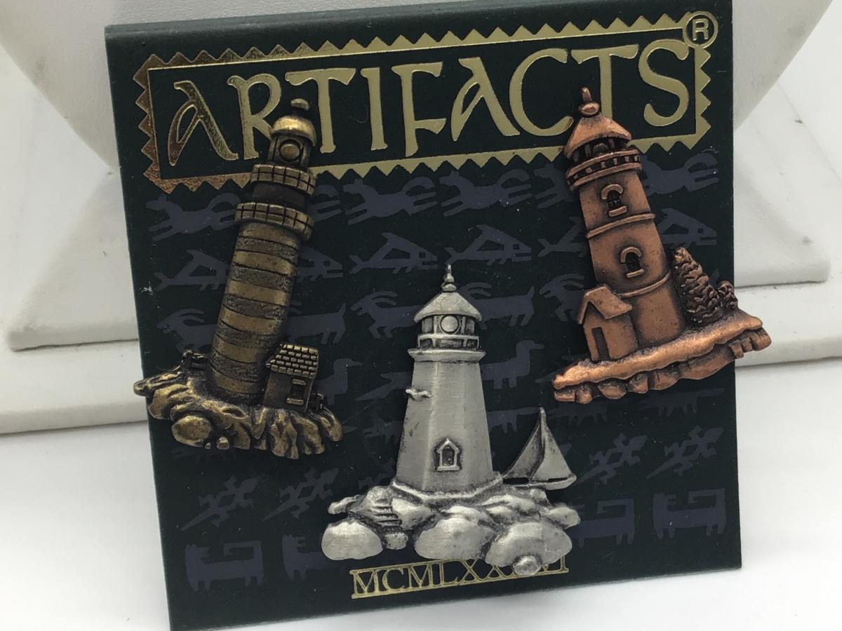 JJ. Lighthouse pins. Stamped