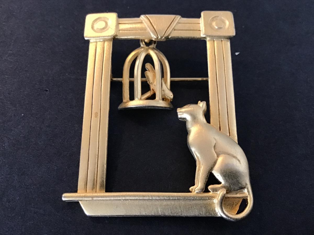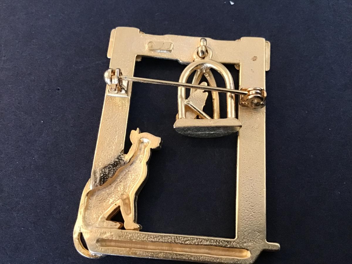 JJ Vintage Brooch. Signed Kitten and Bird
