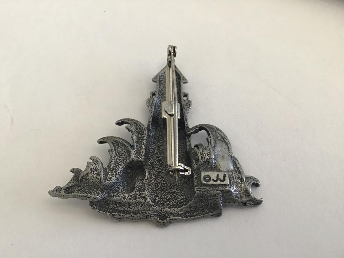 JJ. Vintage Pewter Glitter wave Brooch