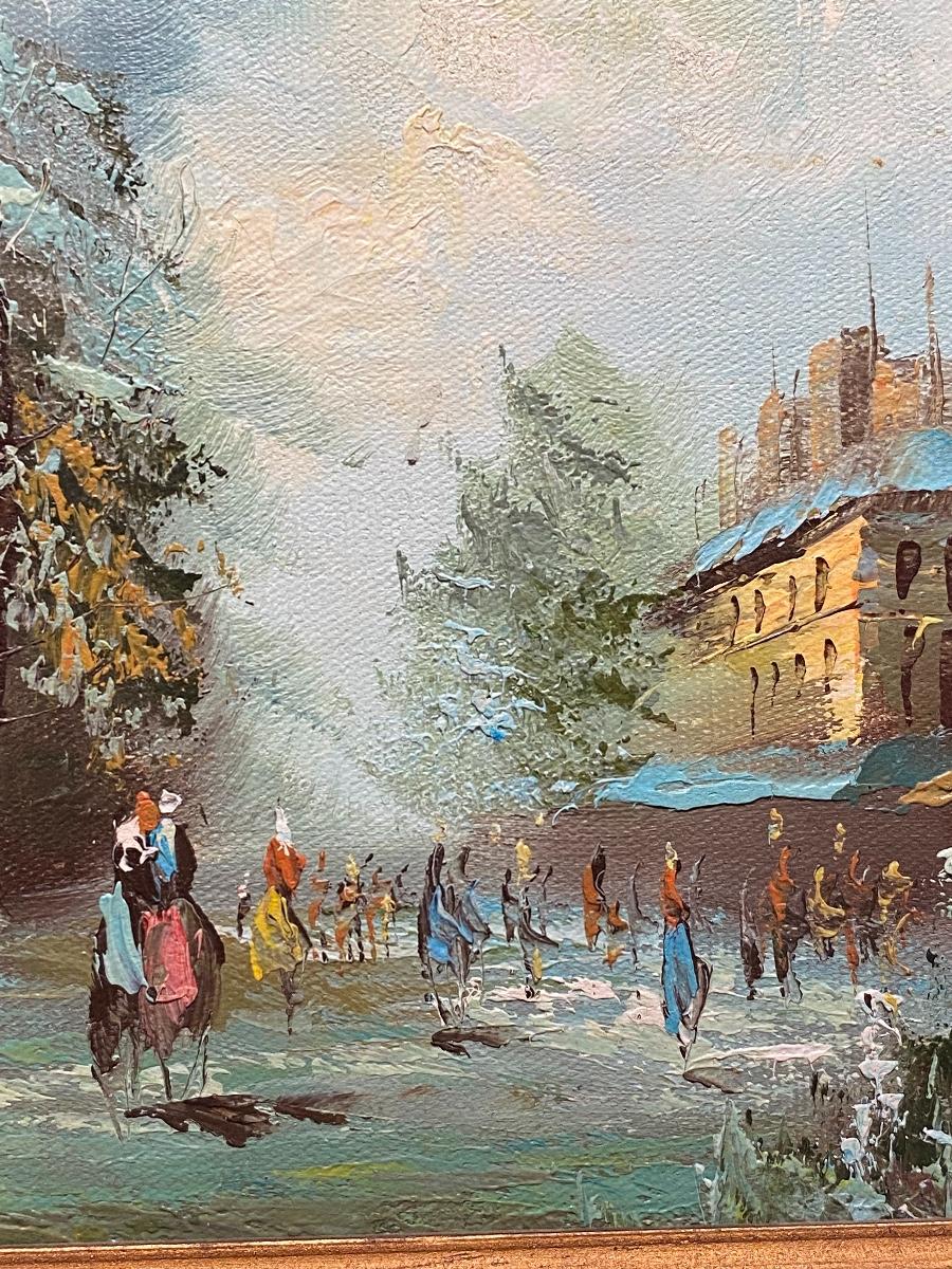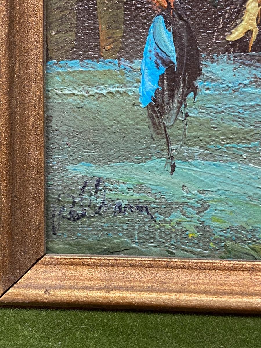 Small Vintage Cityscape Painting. Nicely done. Signed in lower left corner. About 15" size.