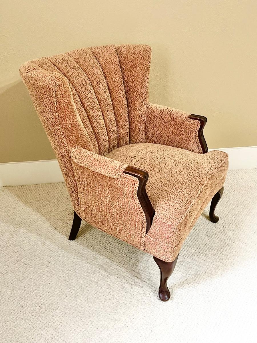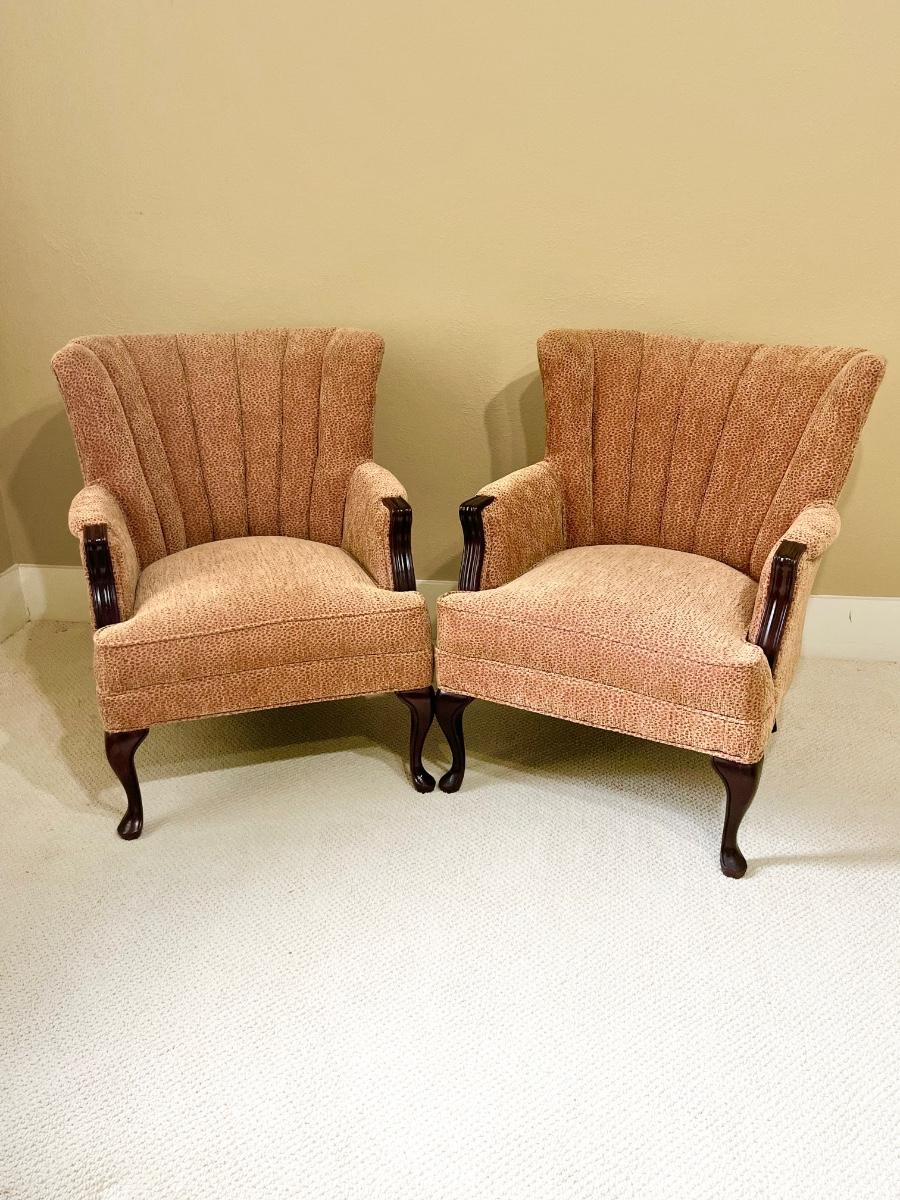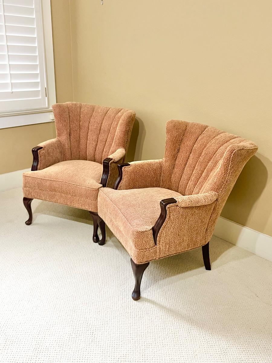 Pair (2) Winged Back Chairs ~ Mahogany Legs And Arm Accents