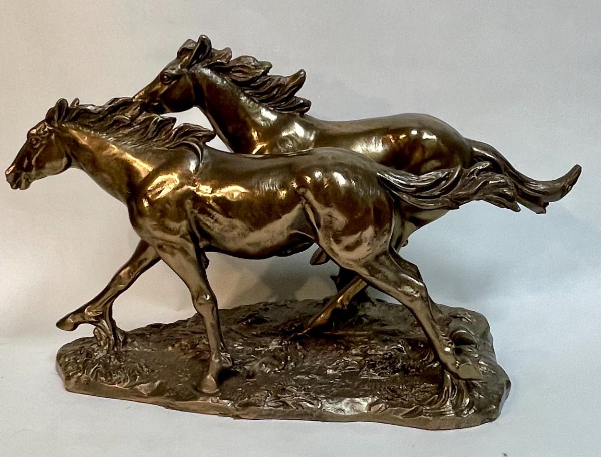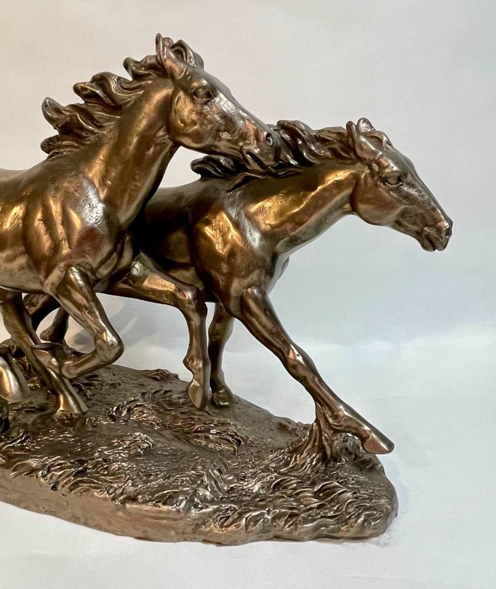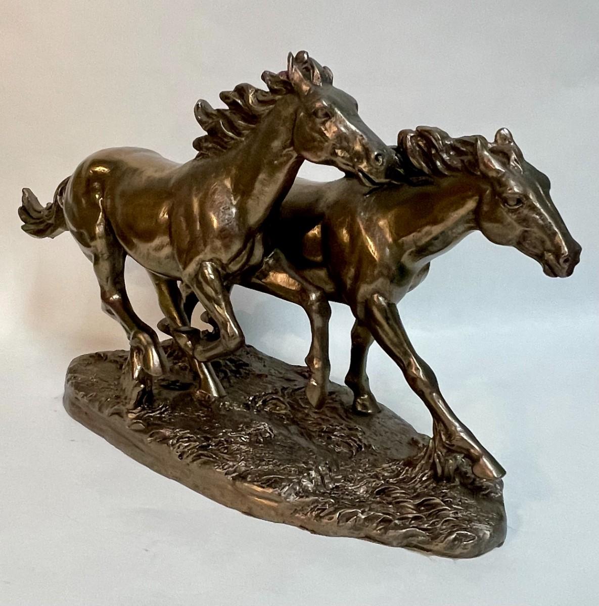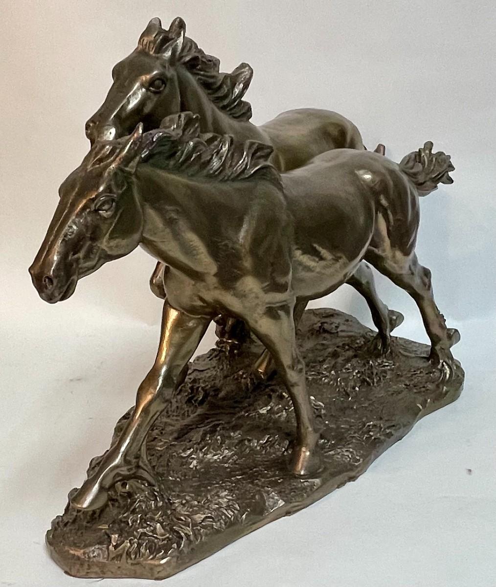 Kensington Hill Horses Running Wild Galloping Cast Resin Sculpture Bronze Finnish