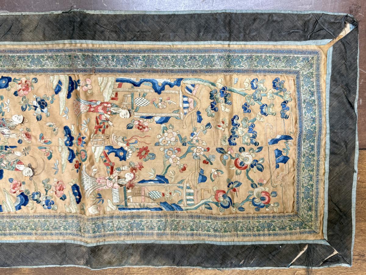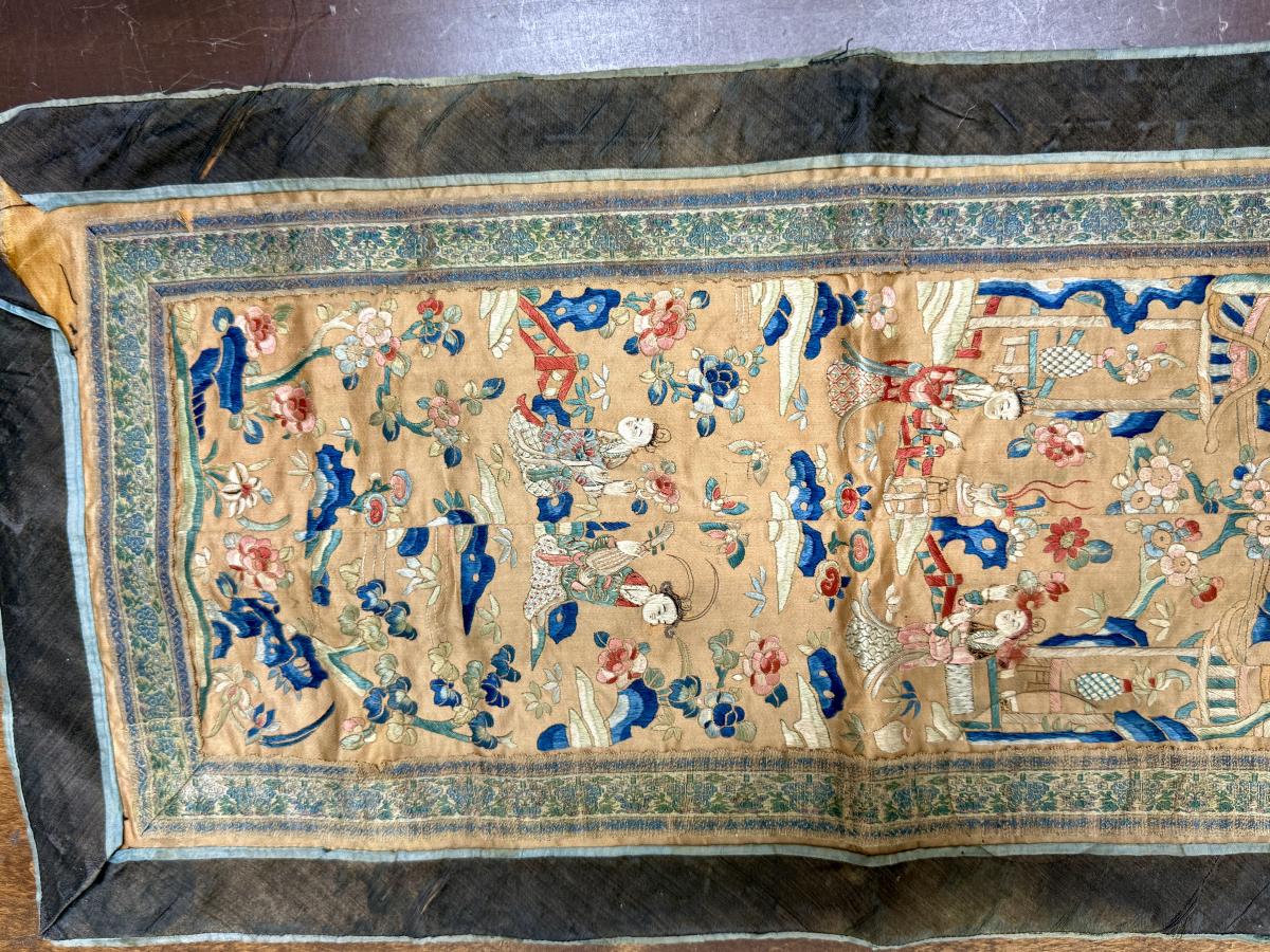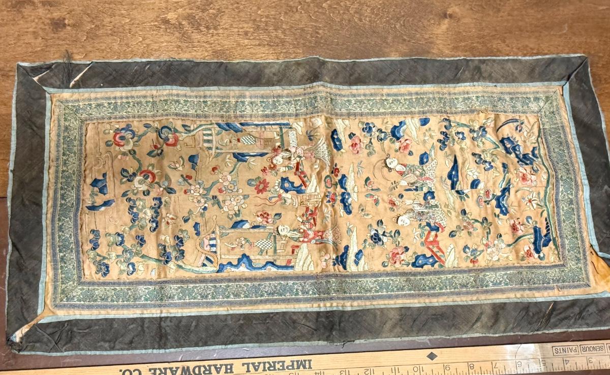 Antique Chinese Silk Embroidery Wall Hanging 28" x 13"