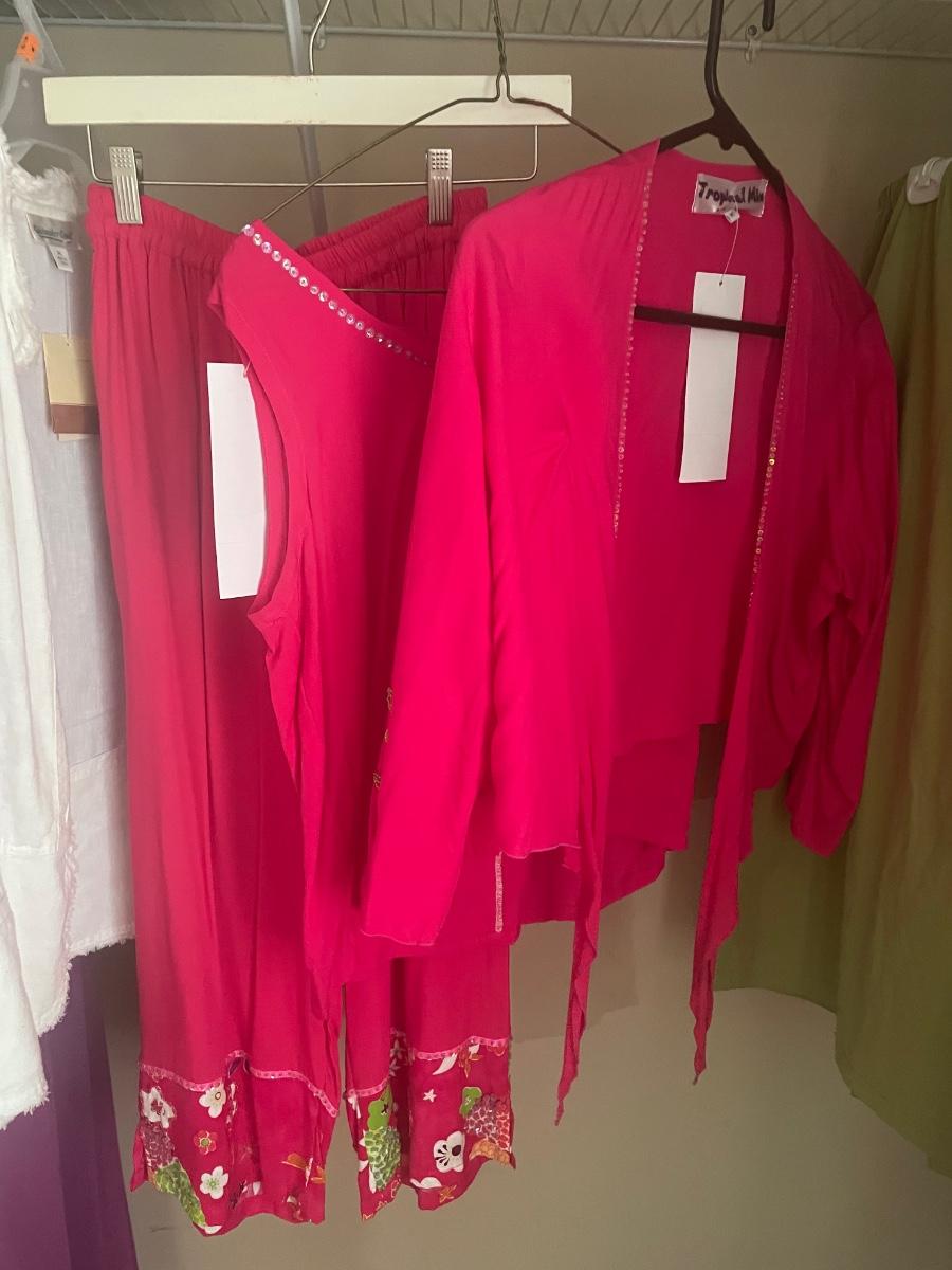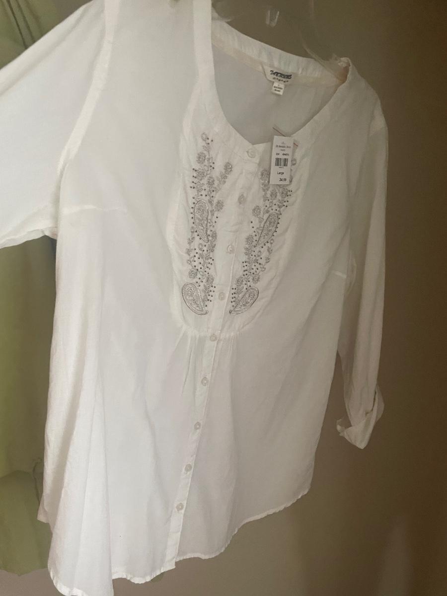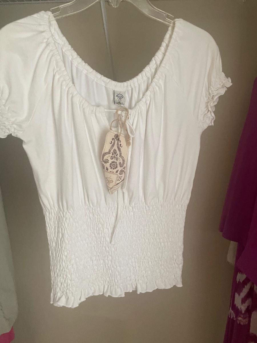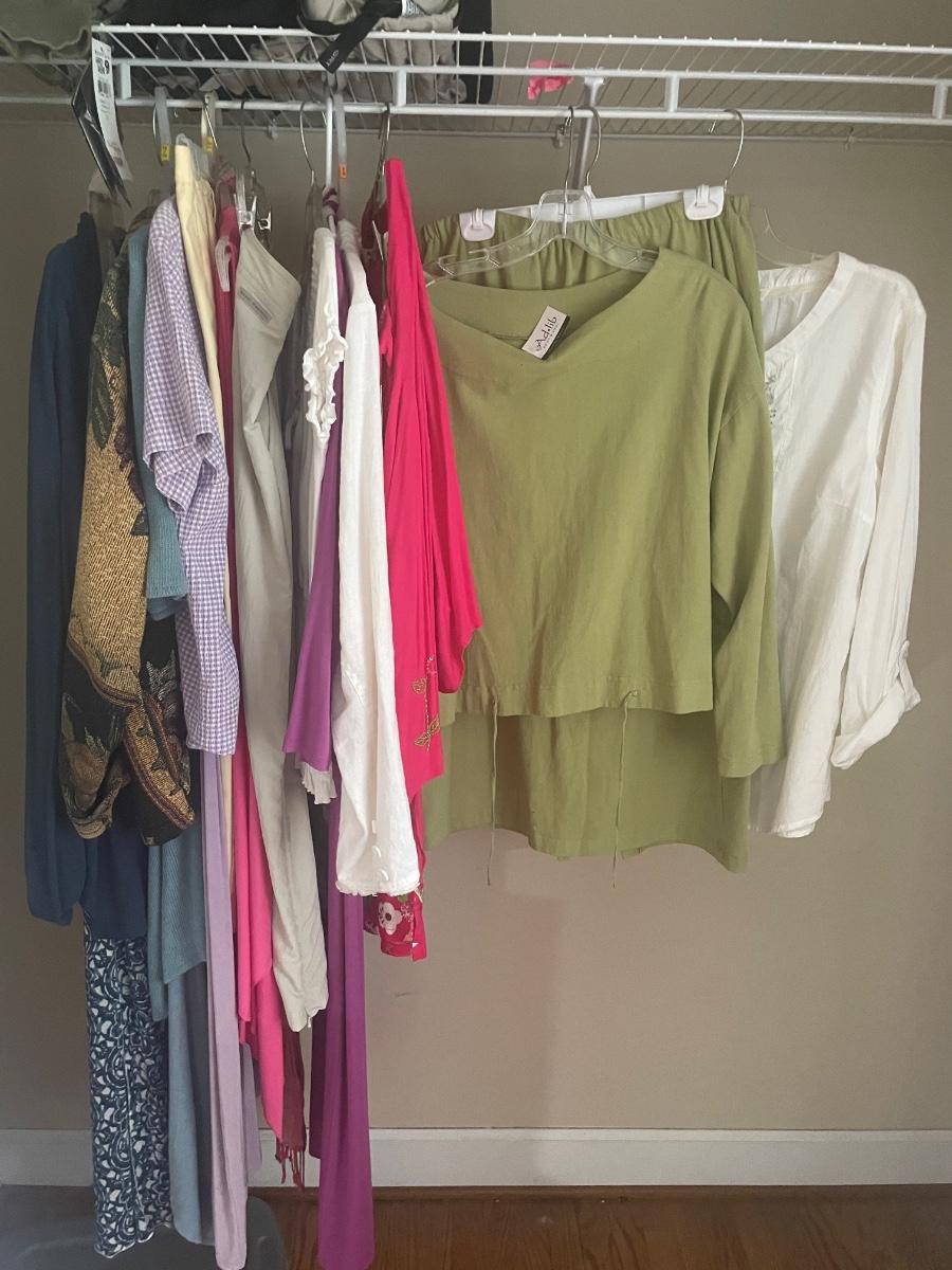 A great assortment of clothing in sizes small to medium and large that are mostly new with tags. See images for brands, sizes and tags.