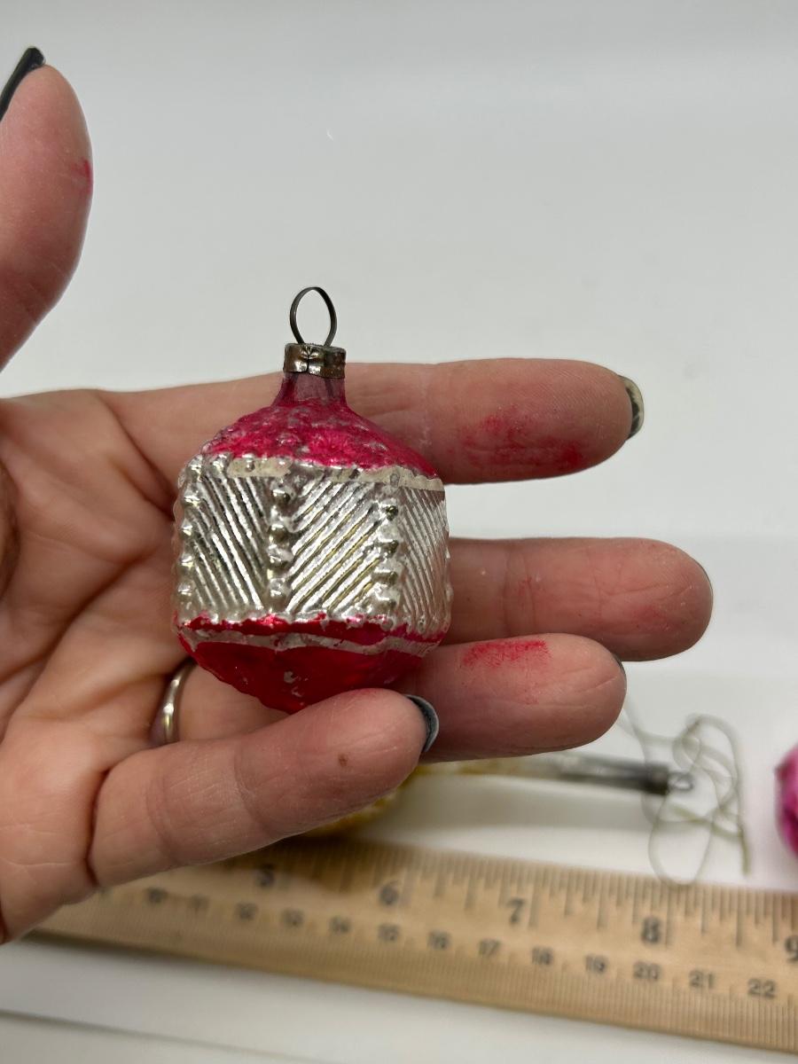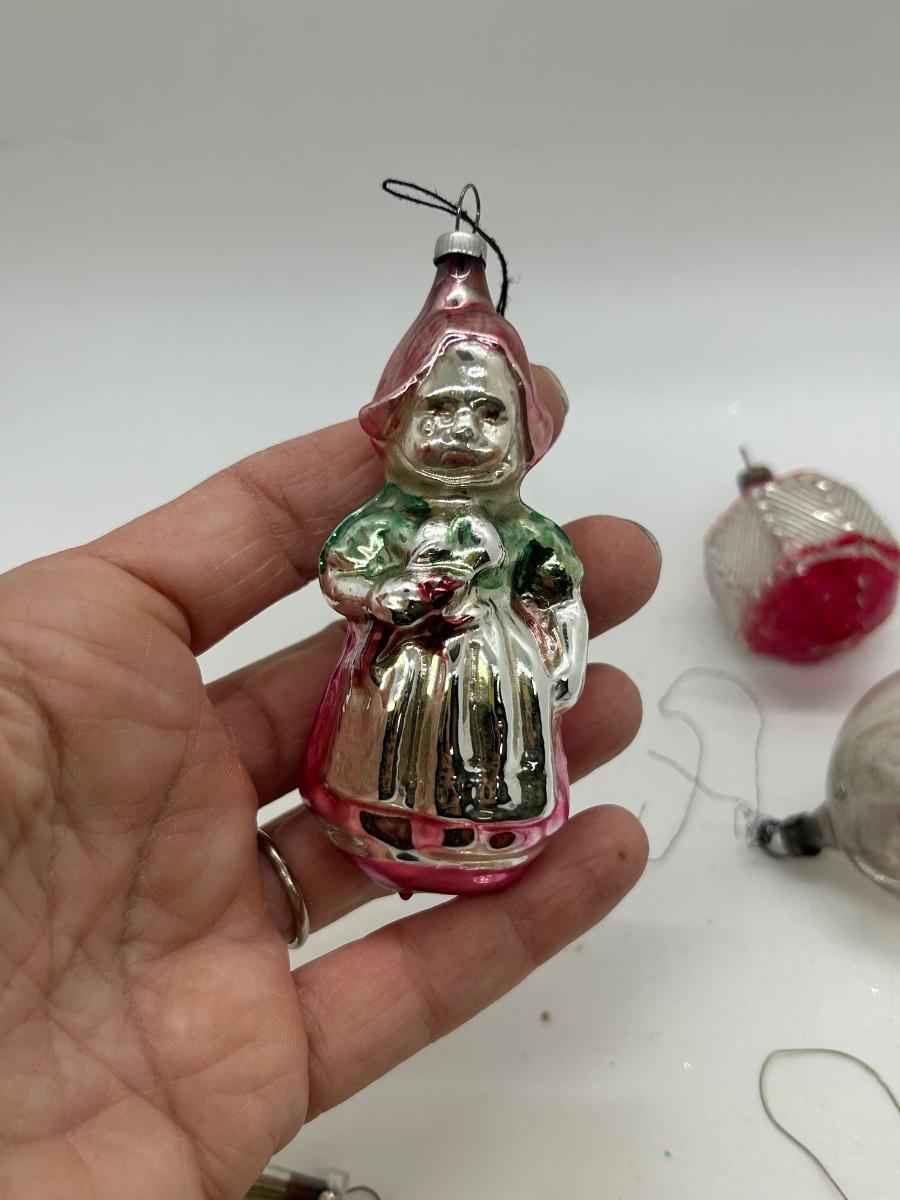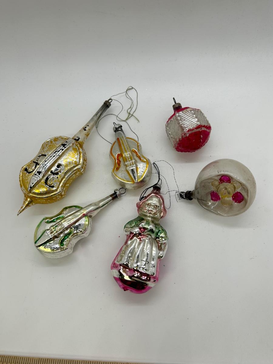 Mixed Lot of Novelty Shaped Blown Glass Christmas Holiday Ornaments Violins Woman Indent Top. In vintage condition. No broken ornaments but there is wear from age and previous use.