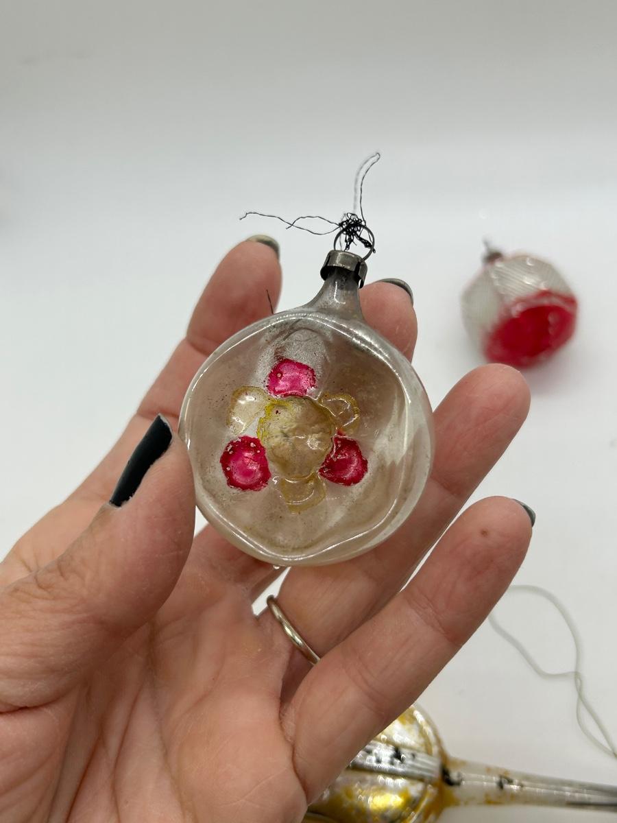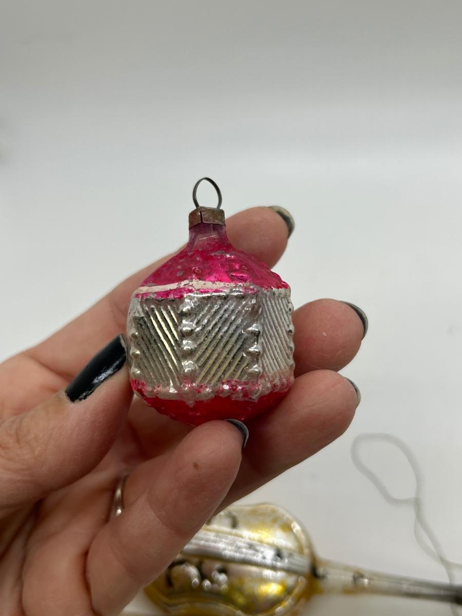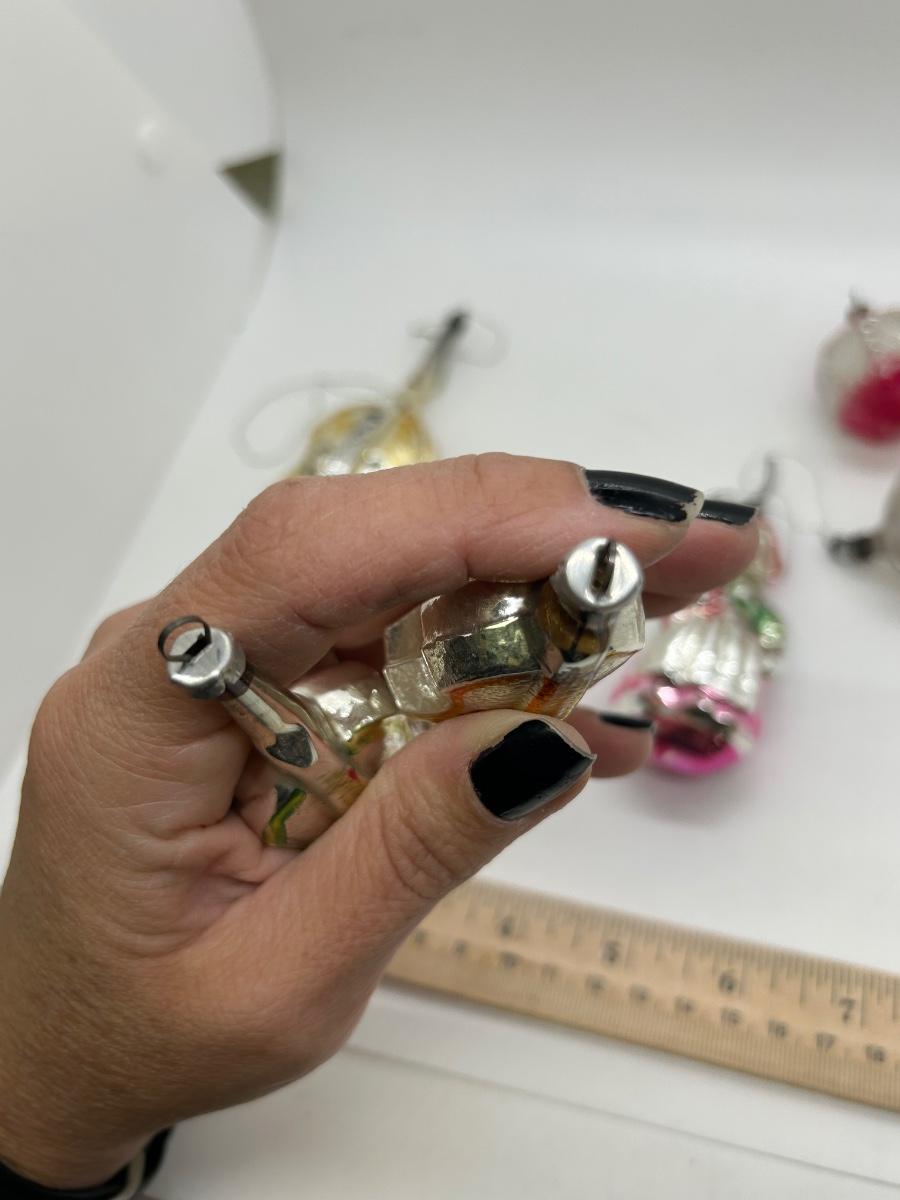 Mixed Lot of Novelty Shaped Blown Glass Christmas Holiday Ornaments Violins Woman Indent Top