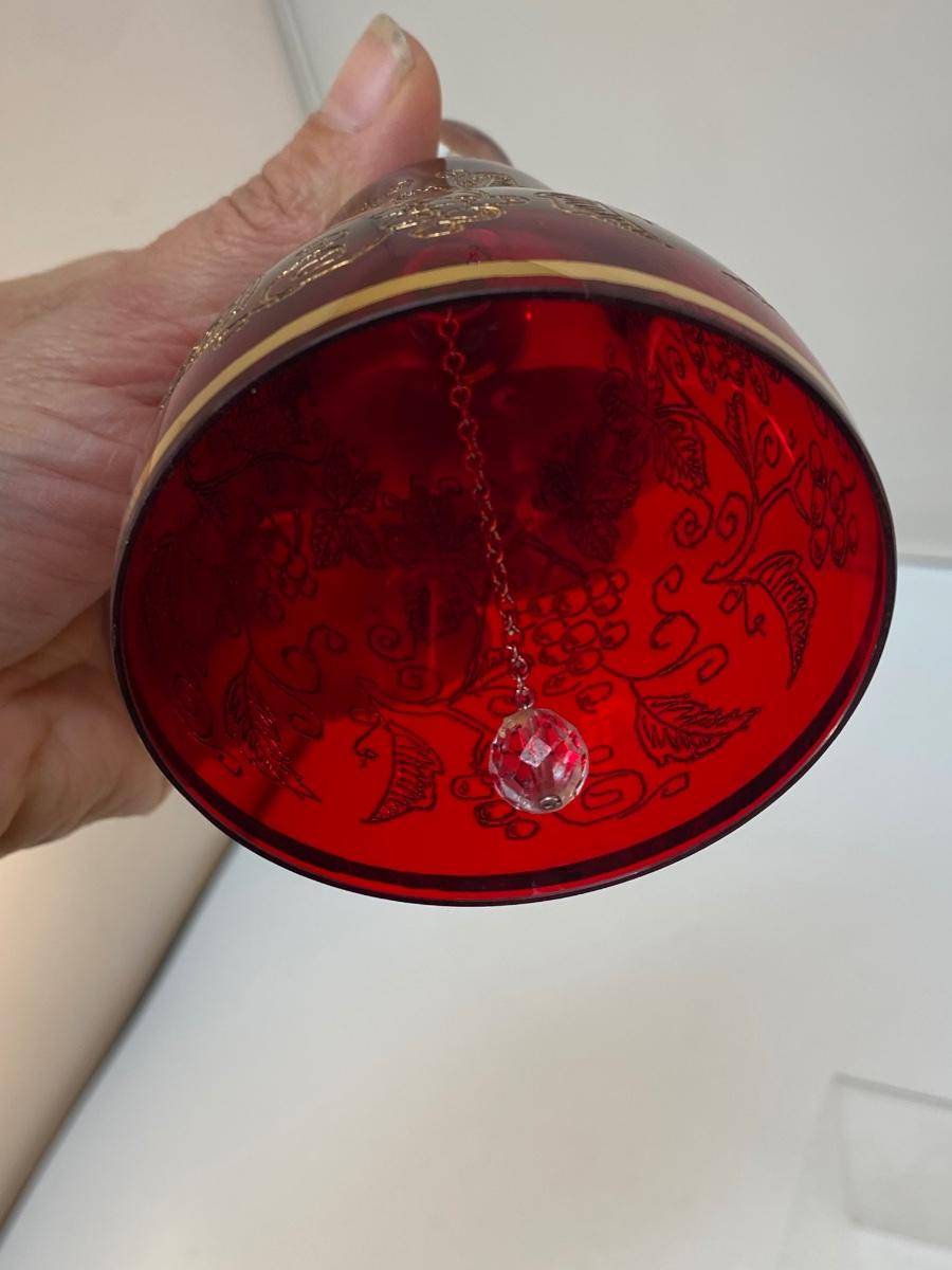 Vintage Red and Gold Grape Vine Pattern Glass Bell