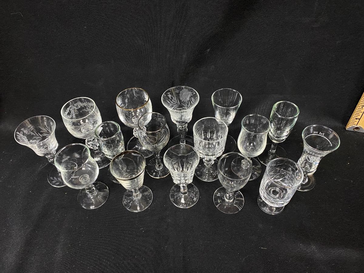 Huge Mixed Style Lot of Crystal Glass Stemware Cordial Glasses