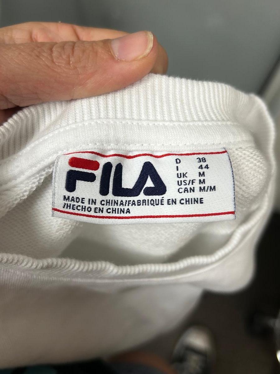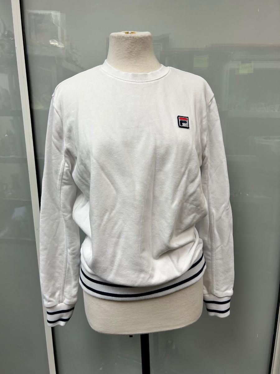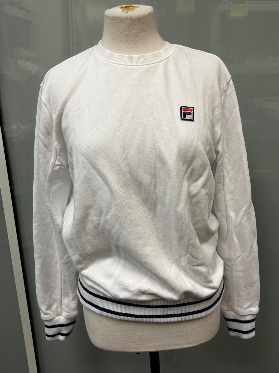 White with Traditional Logo Blue Red Striped FILA Sweatshirt Pullover. In good condition. Size medium.