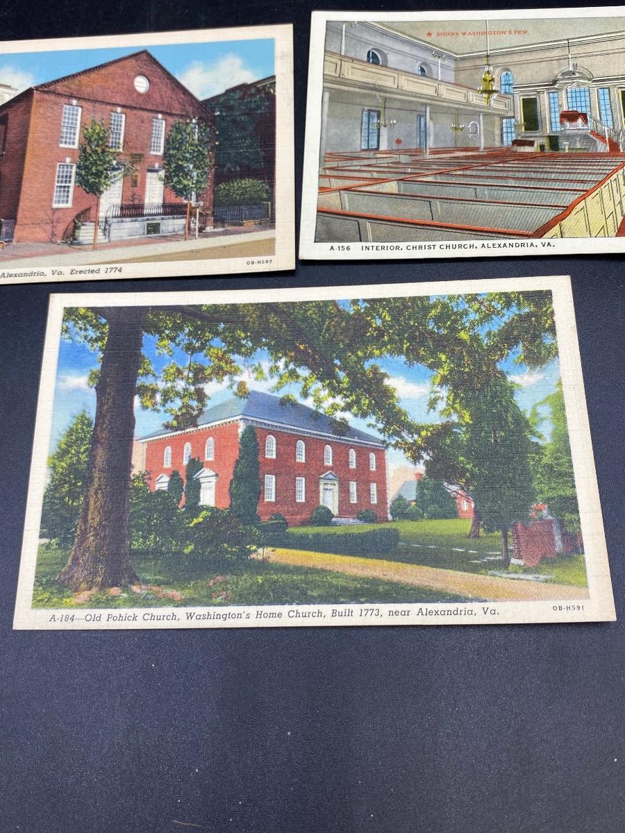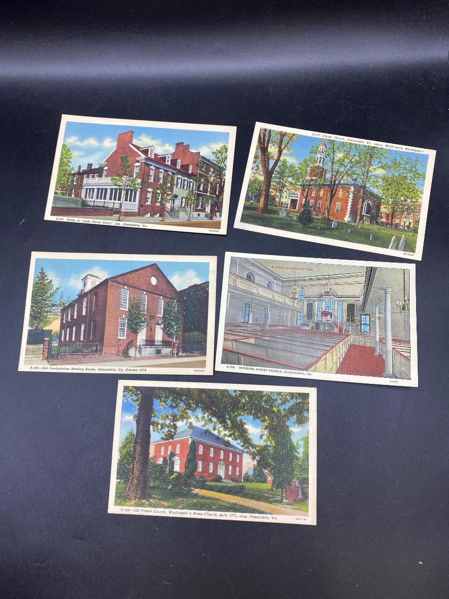 Set of 5 Vintage Post Cards of George Washington's Churches Scenic Art