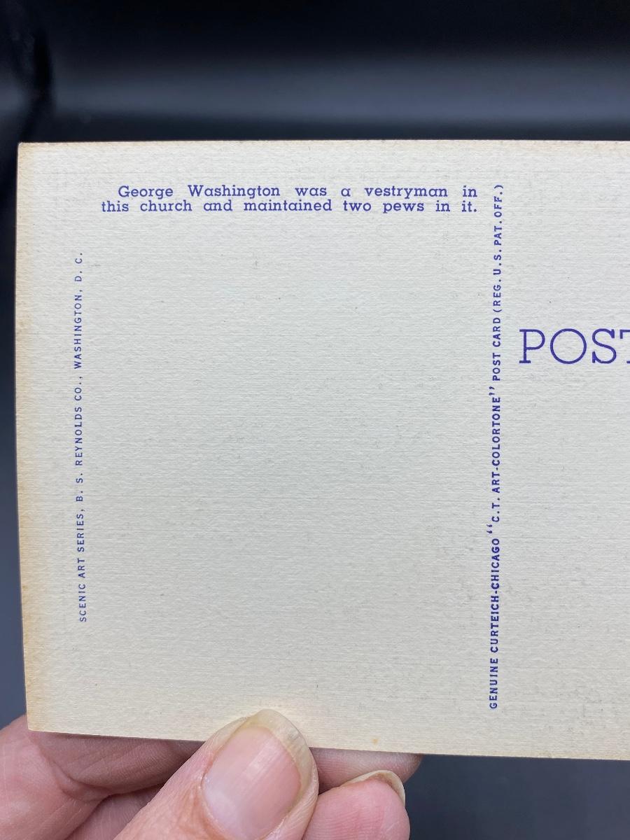 Set of 5 scenic art series postcards featuring George Washington's church. All in good condition.