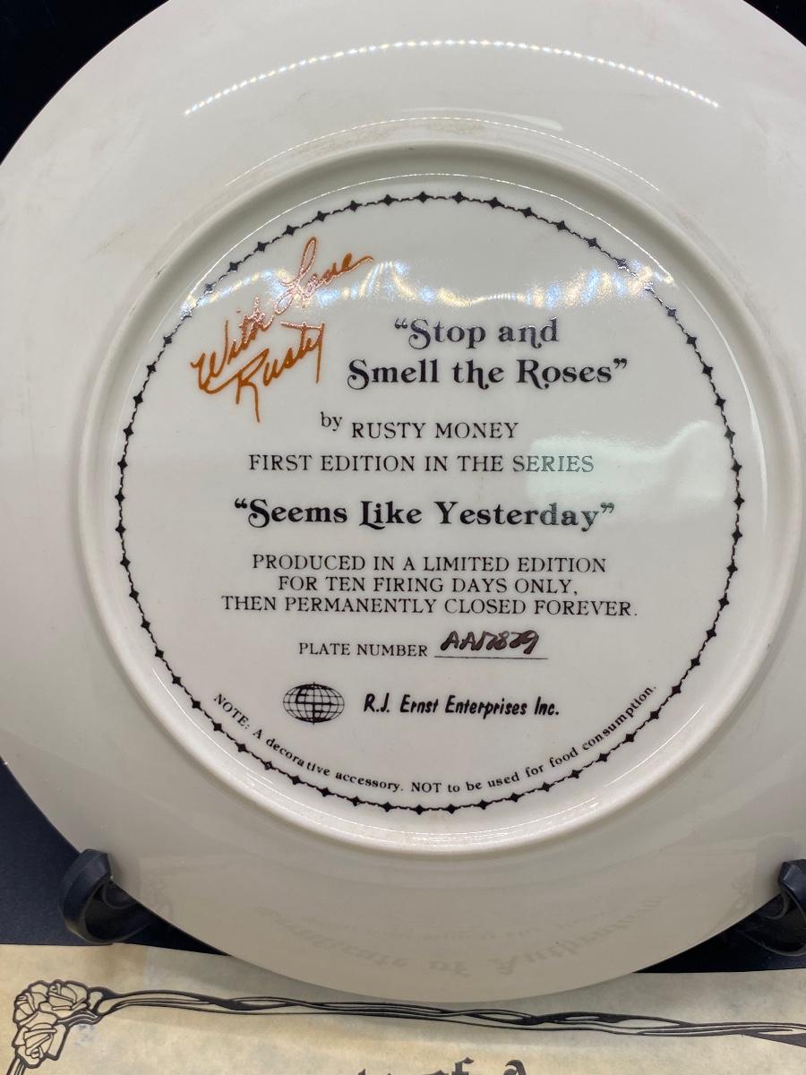 1981 "Stop and Smell the Roses" by Rusty Money. First edition in the Seems like Yesterday collection. Limited edition. Signed by the artist on the back. Comes in box with COA insert. Good condition.