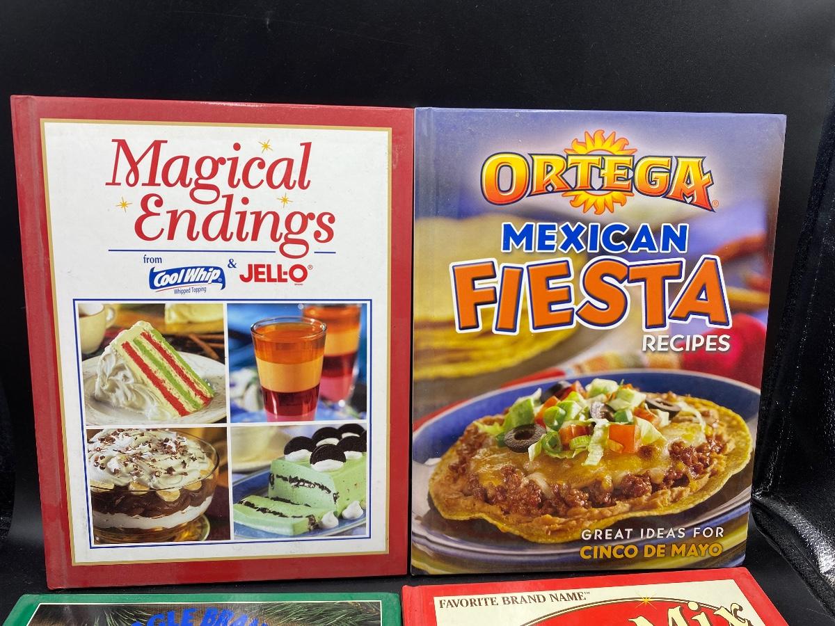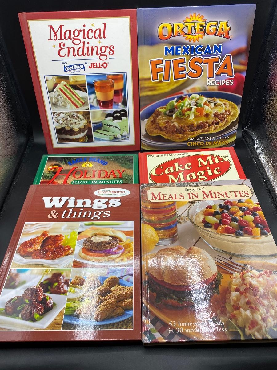 Set of 6 Small Softcover Branded Recipe Booklets. Recipes featuring brands from Jello, Ortega, Eagle Brand, and more. Good condition.
