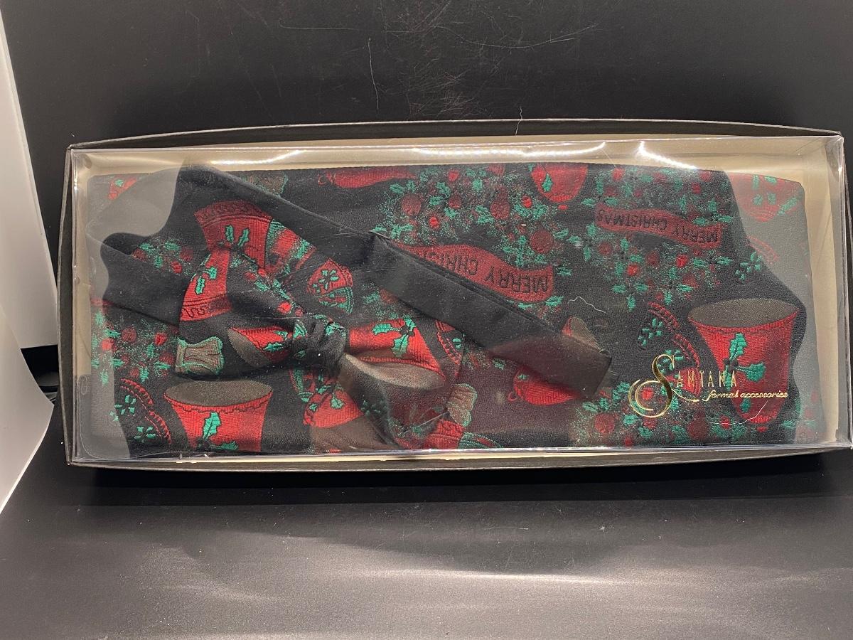 Vintage Merry Christmas Holiday Cummerbund and Bow Tie Set