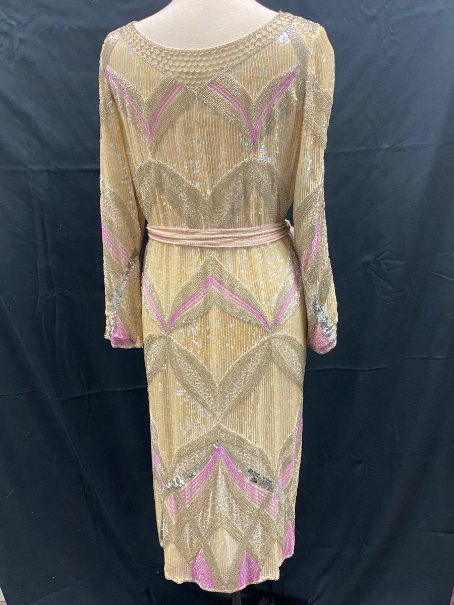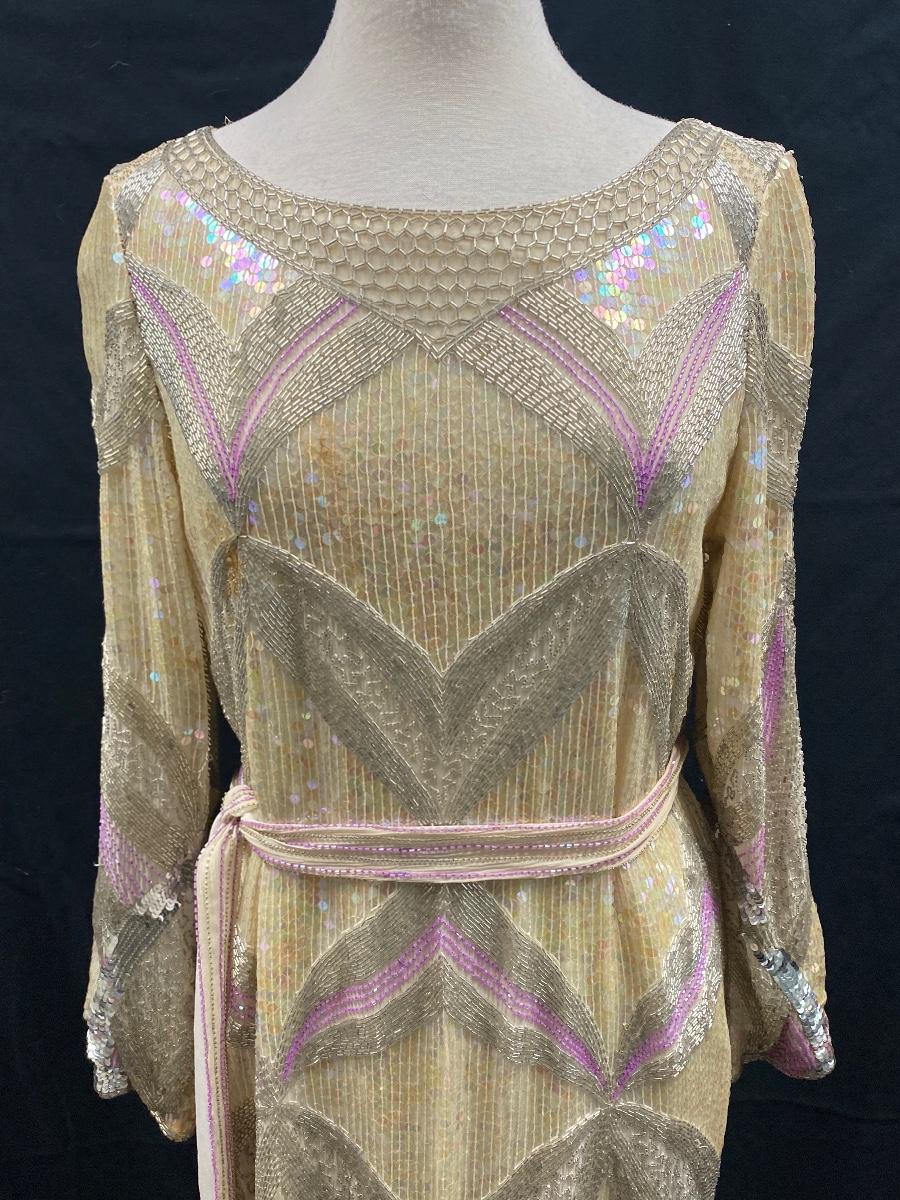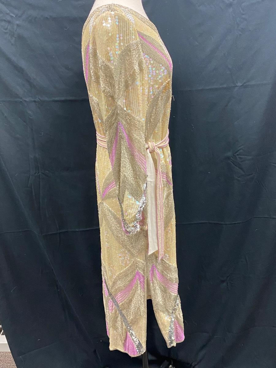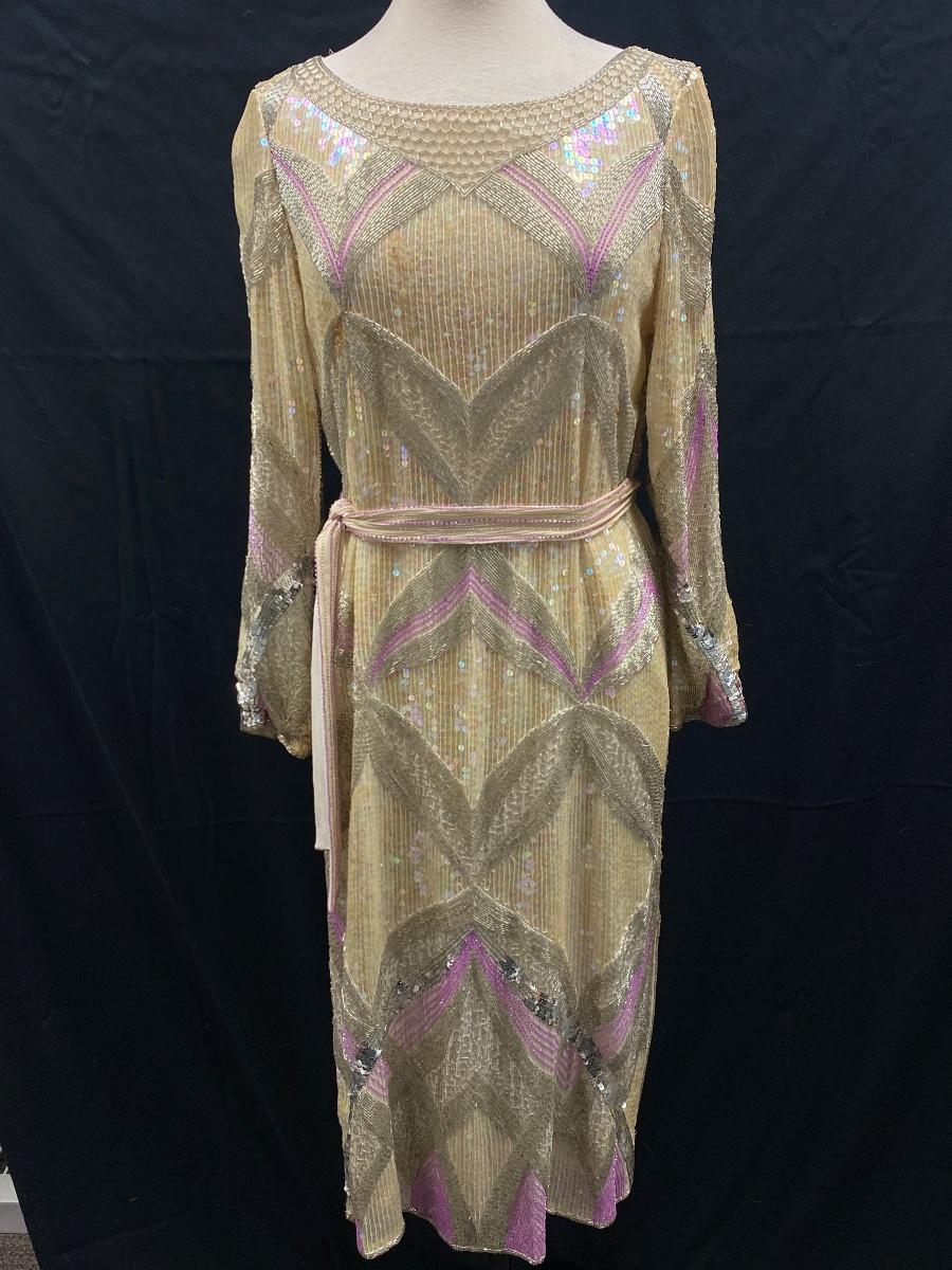 Vintage Judith Ann Creations Heavy Bead & Sequin Silk Woman's Flapper Party Formal Dress Small