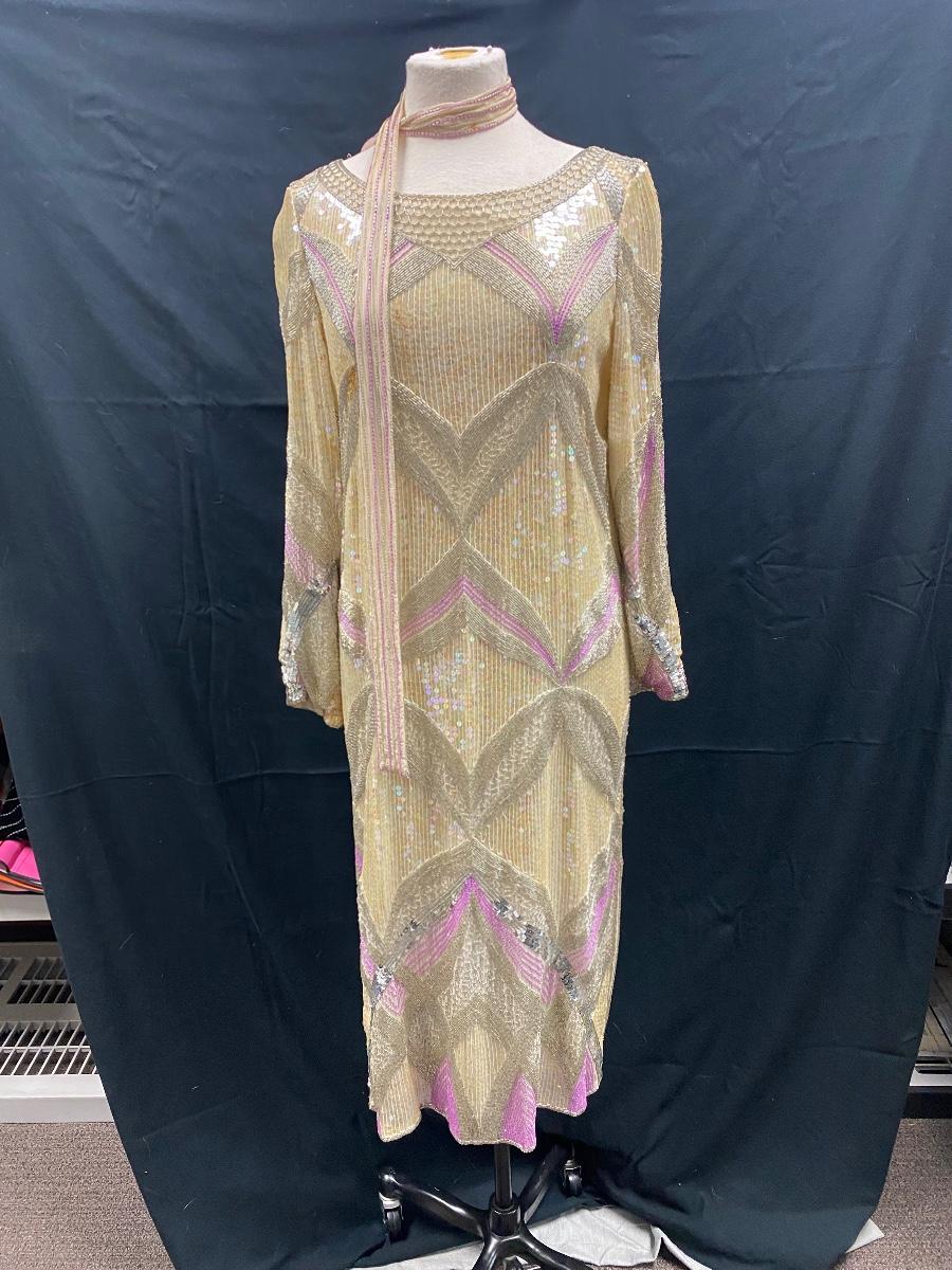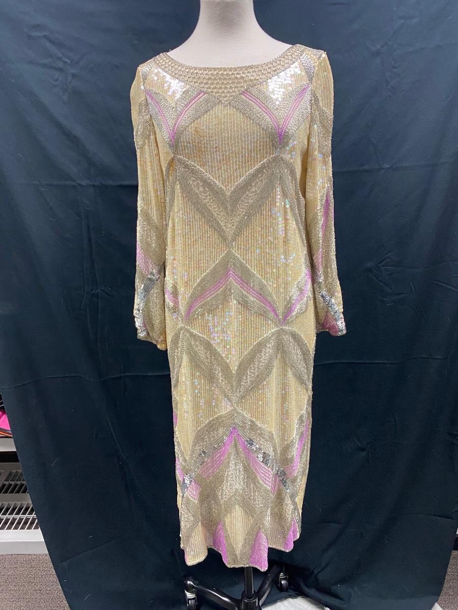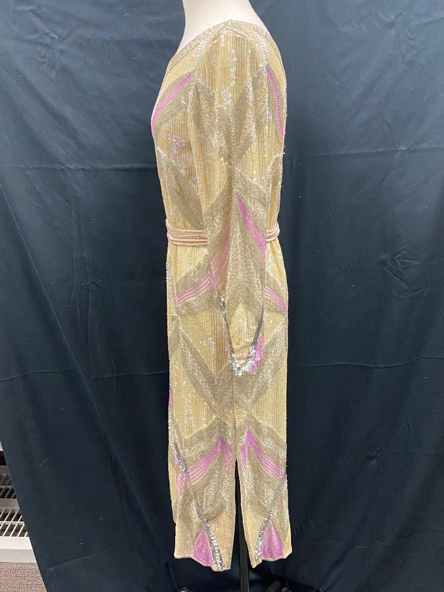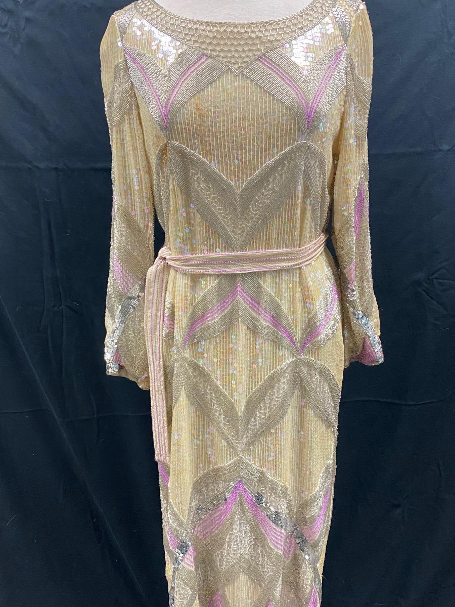 Vintage Judith Ann Creations Heavy Bead & Sequin Silk Woman's Flapper Party Formal Dress Small