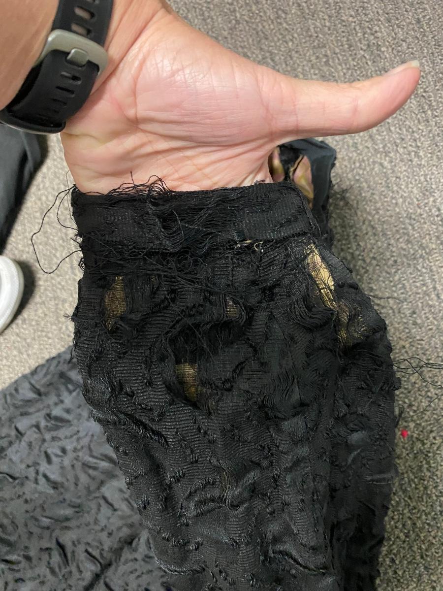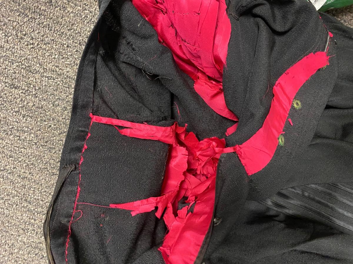 There is some wear to the material on some of the skirts, but there is no other significant damage and is in overall fair collectible or wearable condition. Check pictures for more details.