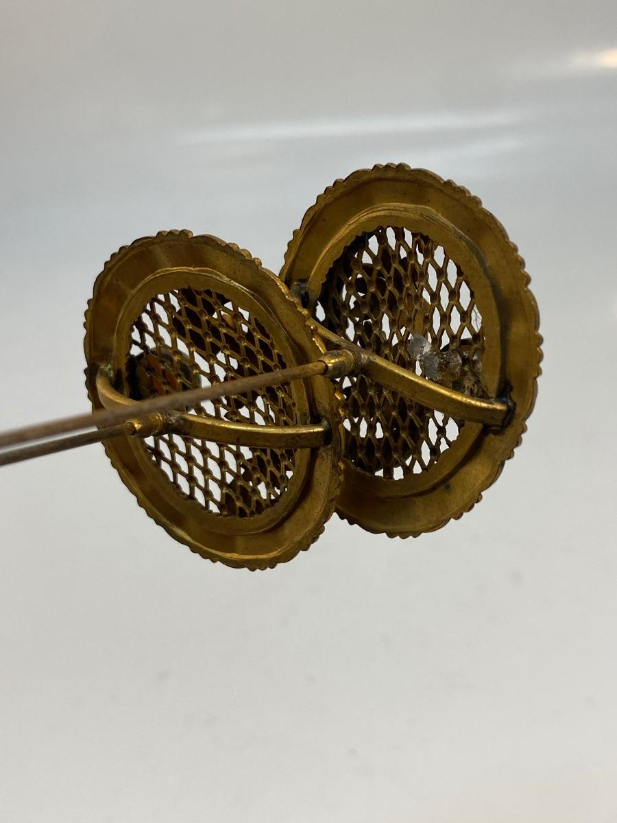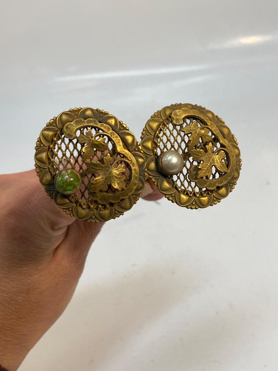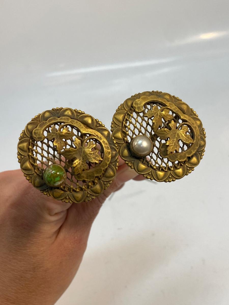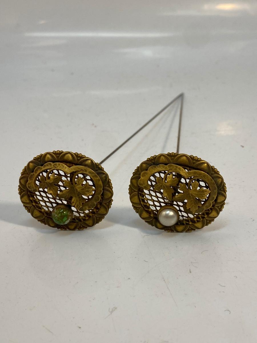 Pair of Matching Round Medallion Art Nouveau Antique Hat Stick Pins