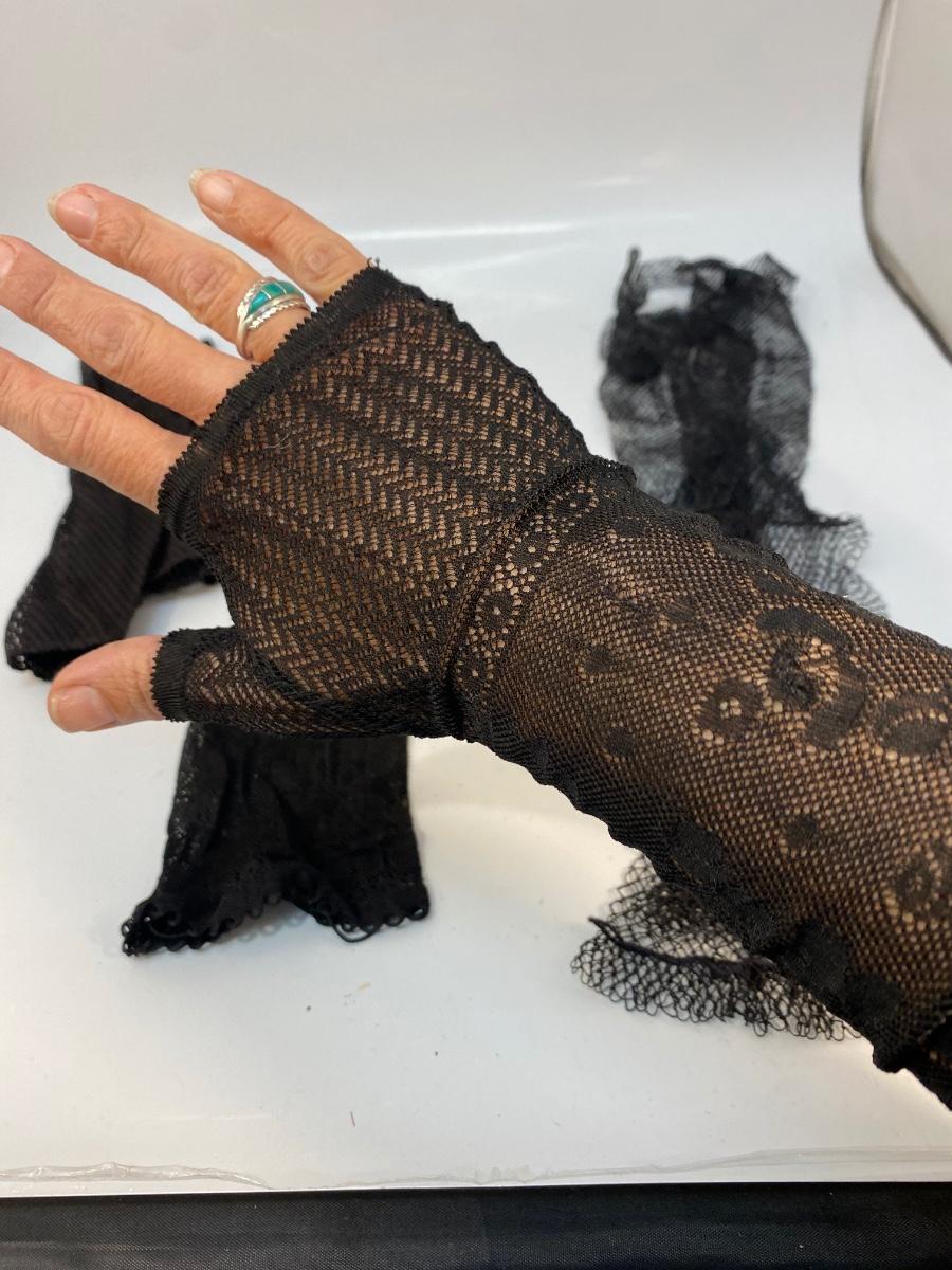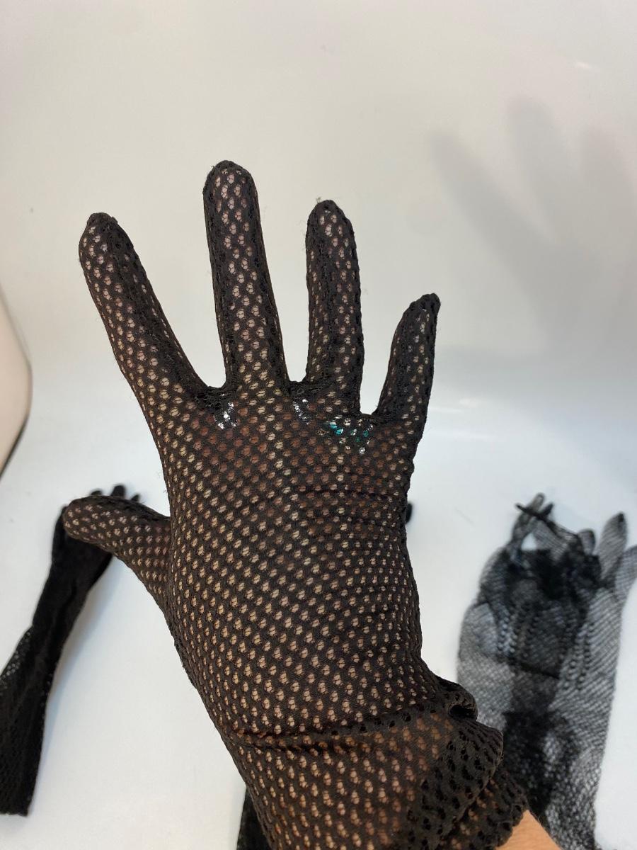 Three Pairs of Vintage Black Mesh Fishnet Gloves. In good previously worn condition. On the small side. Each a little different from the other.