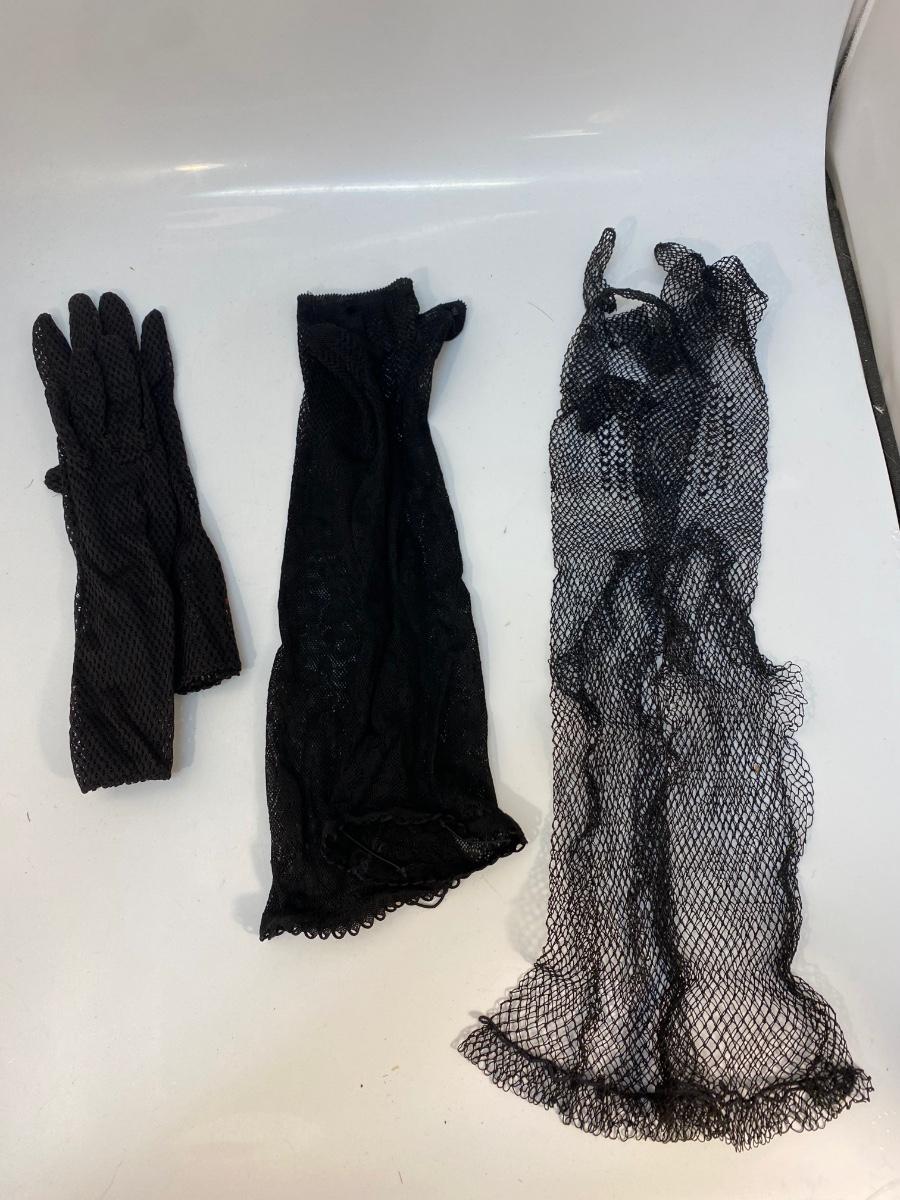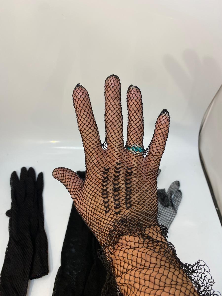 Three Pairs of Vintage Black Mesh Fishnet Gloves