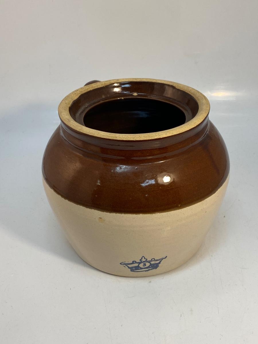 Vintage Single Handle Pottery Jug Urn Bean Pot Robinson Ransbottom Missing Lid. Jug is in good condition, no damage. Stamped with crown and number 3.