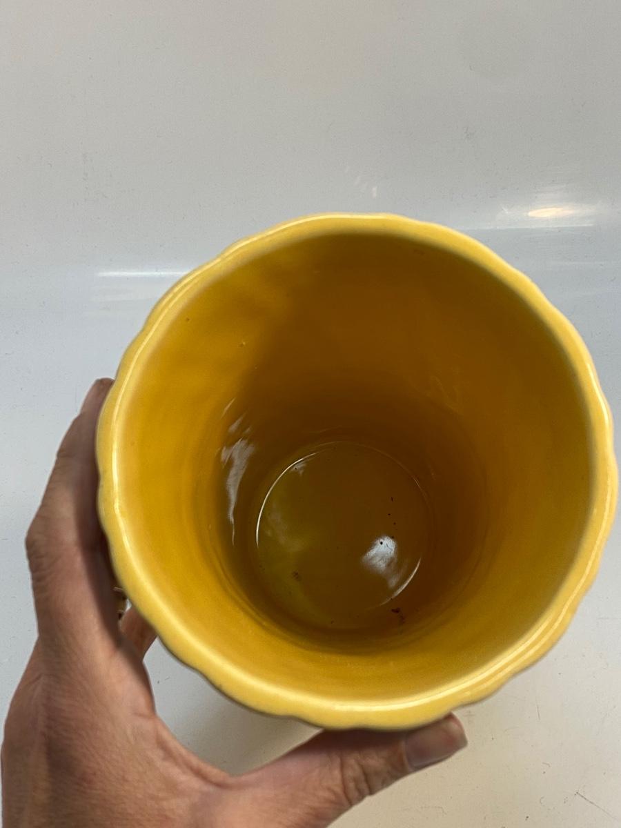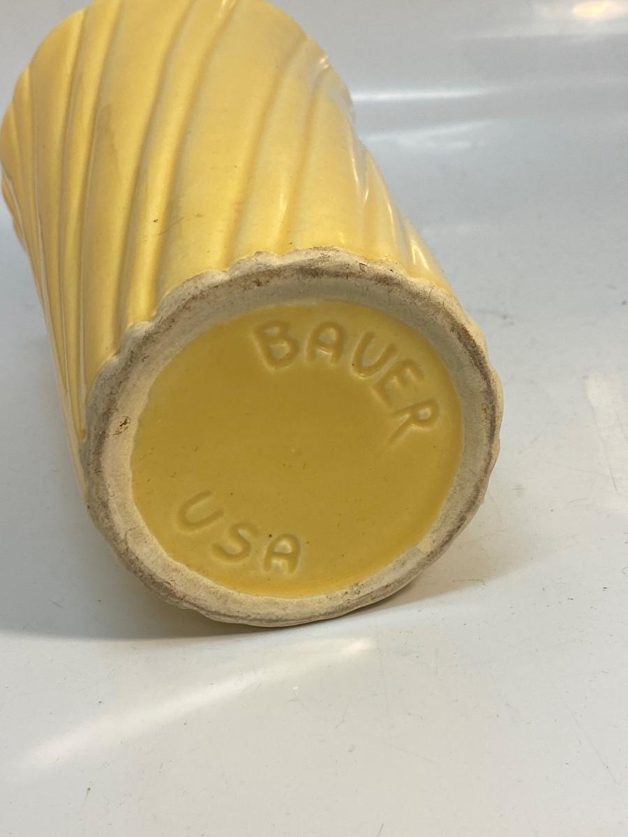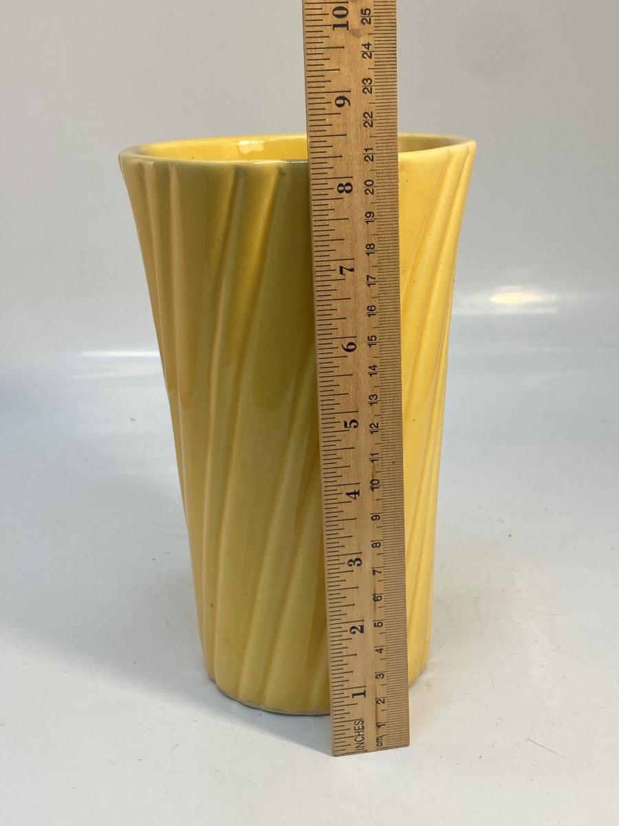 Vintage Sunshine Mustard Yellow Bauer Pottery Swirled Vase. Good vintage condition. Marked bauer USA on the bottom. No chips or cracks. About 8.25" tall.