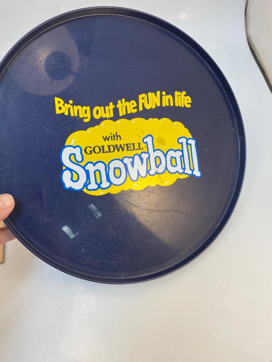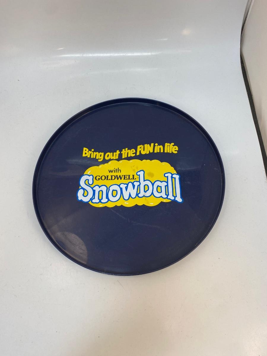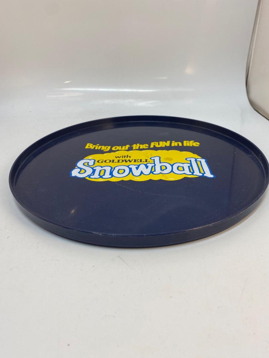 1994 Plastic Goldwell Snowball Alcohol Drinks Barware Advertising Tray. Some light scratches from use. Displays nice. 12" diameter.