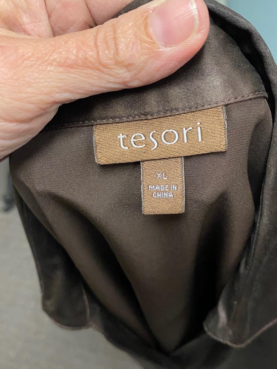 Tesori Rich Chocolate Brown Satin Button Front Blouse Top Size XL. In good condition.