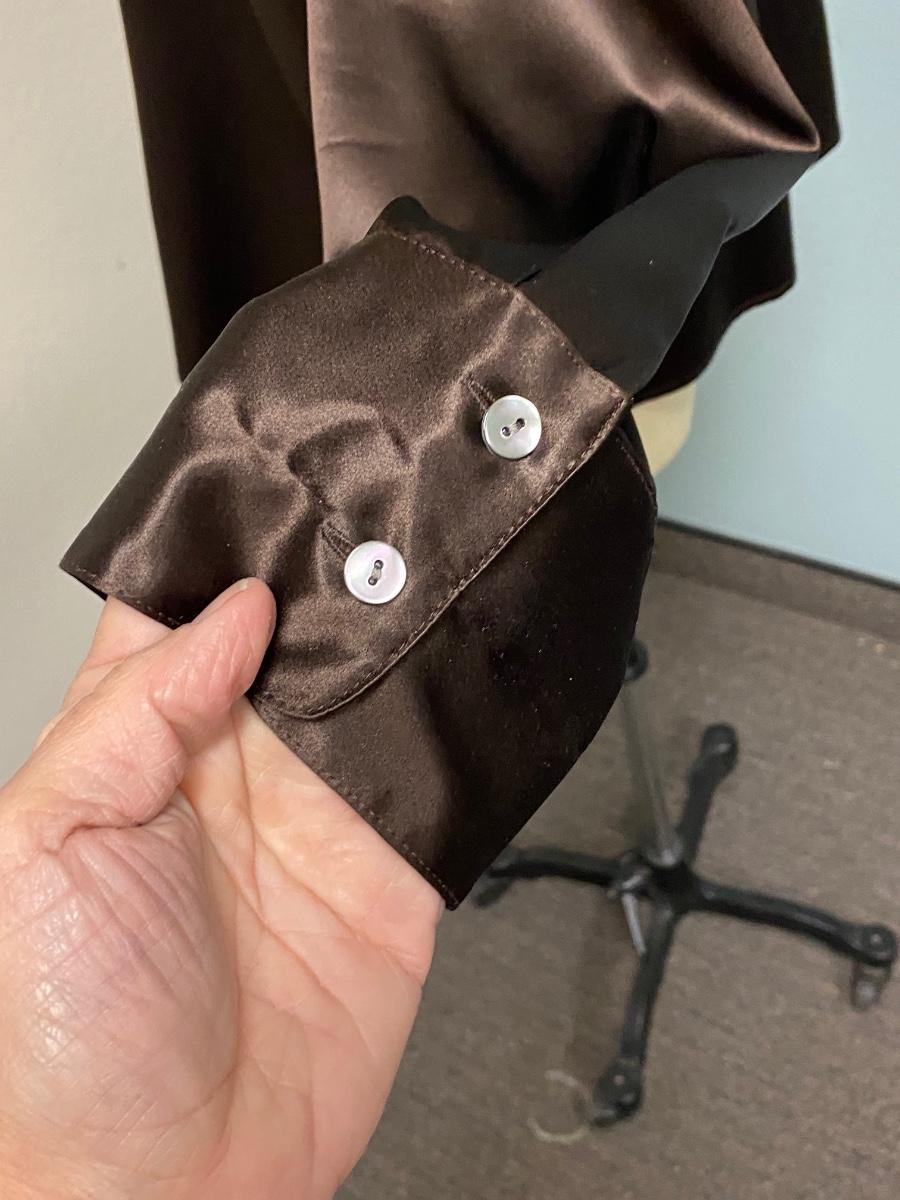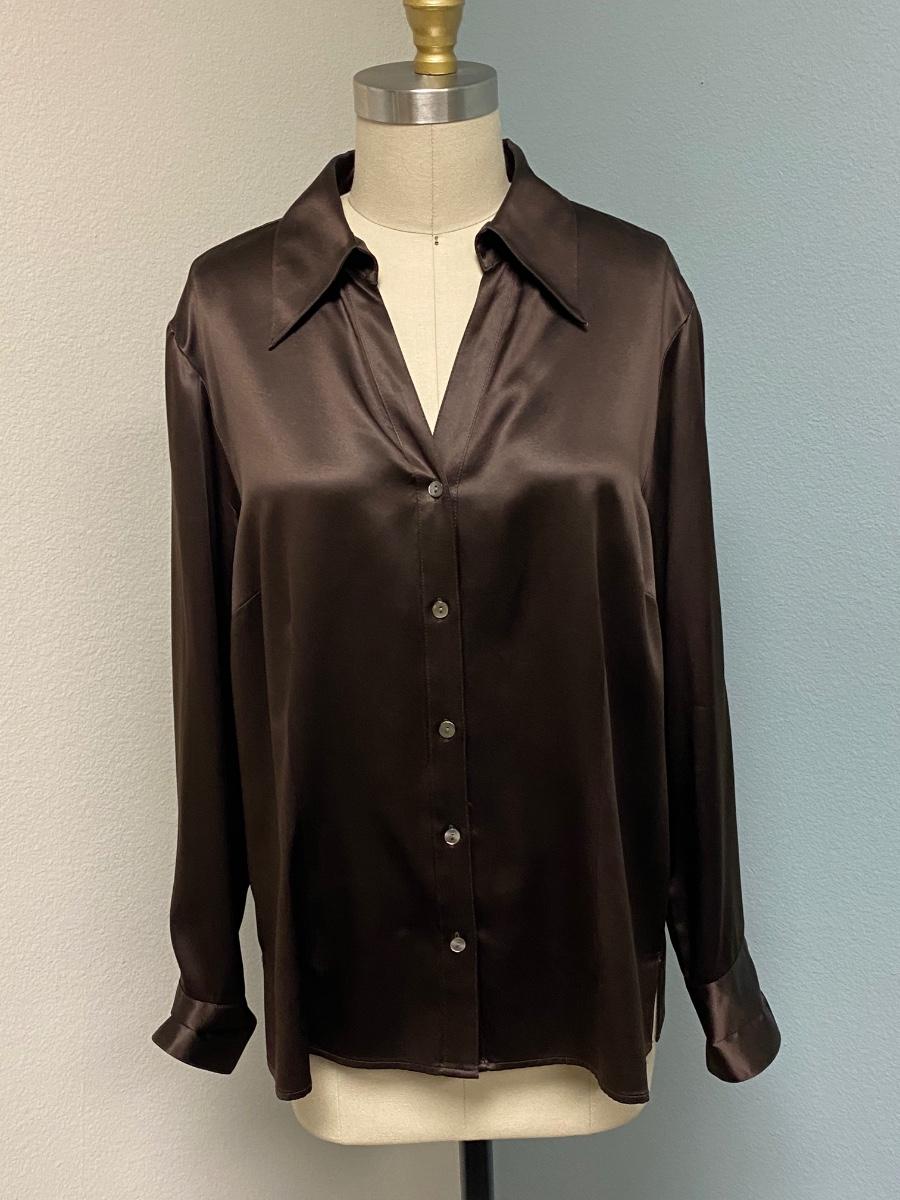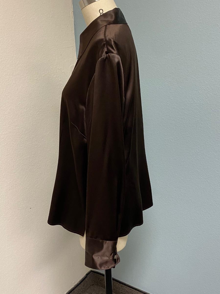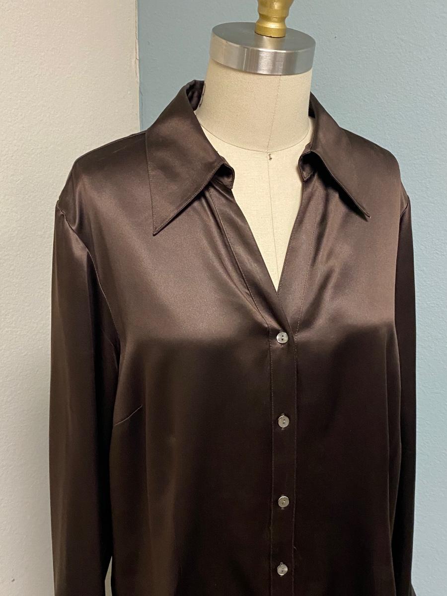 Tesori Rich Chocolate Brown Satin Button Front Blouse Top Size XL