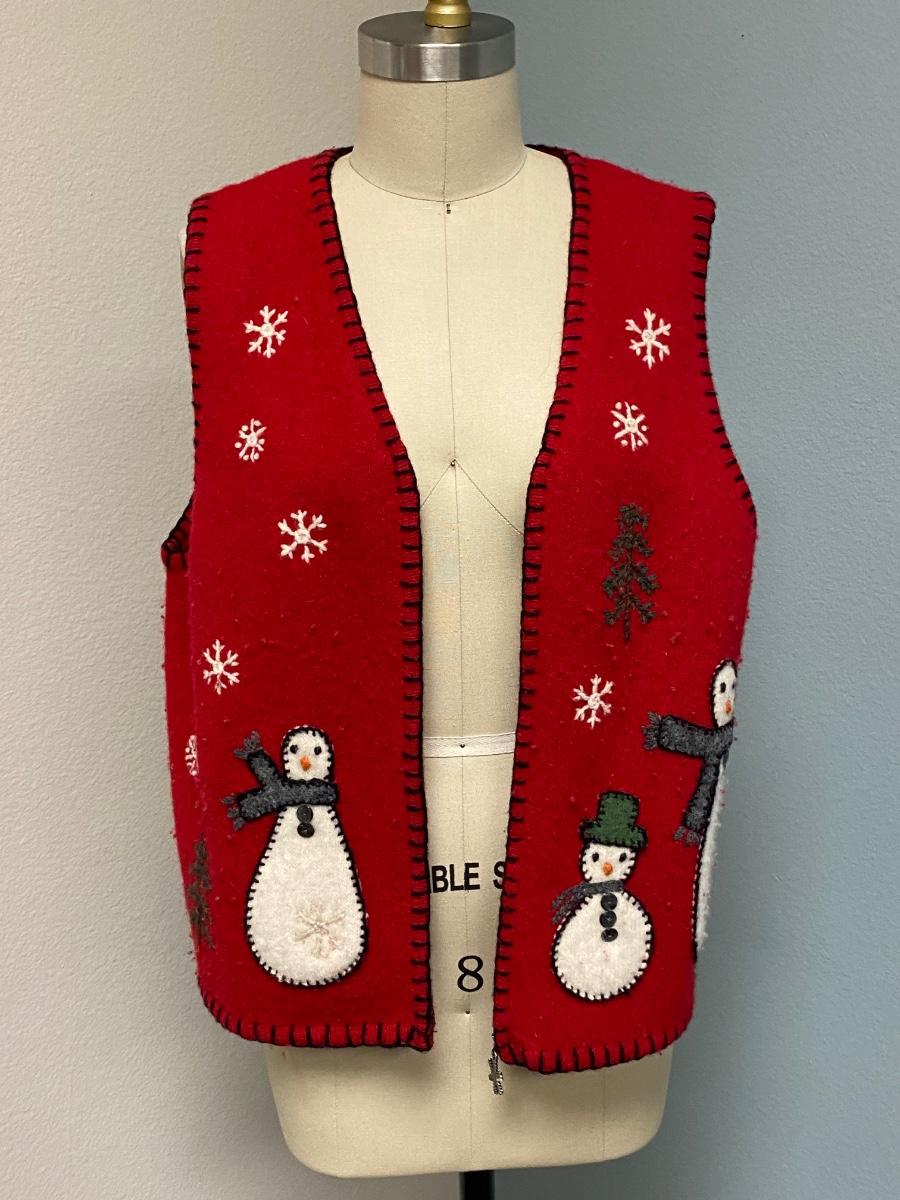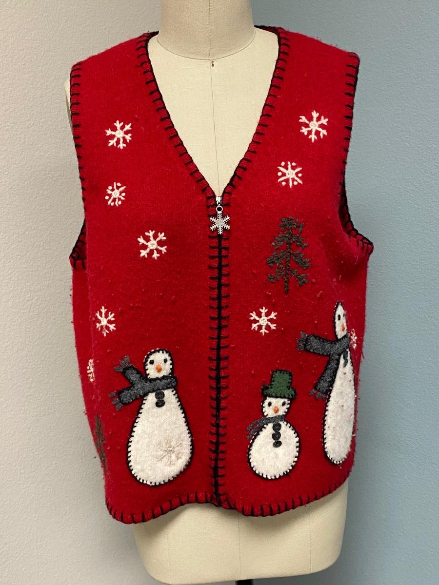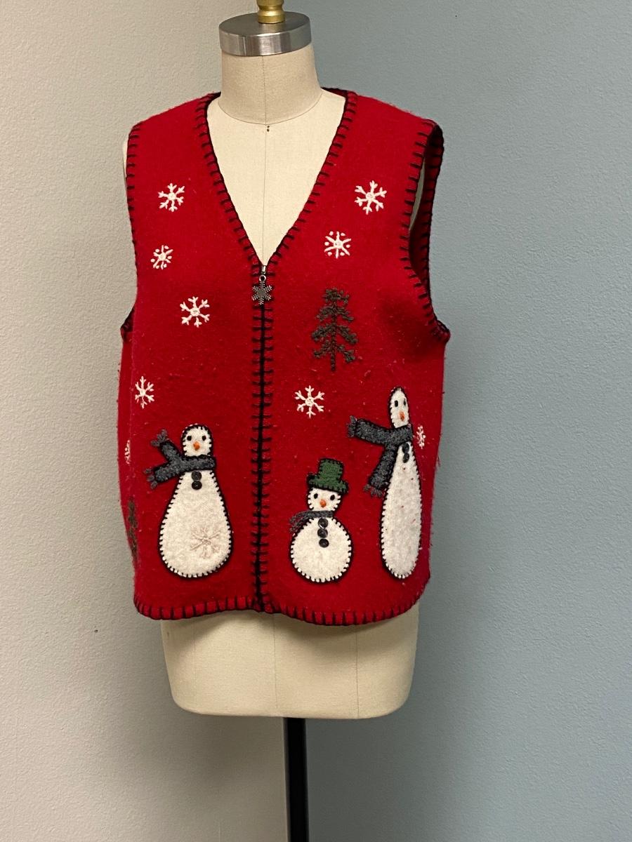 Coldwater Creek Red Christmas Holiday Sweater Vest Zip Front Snowmen. Good condition. Size Large.