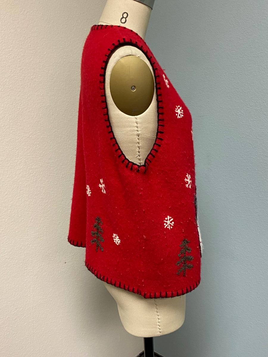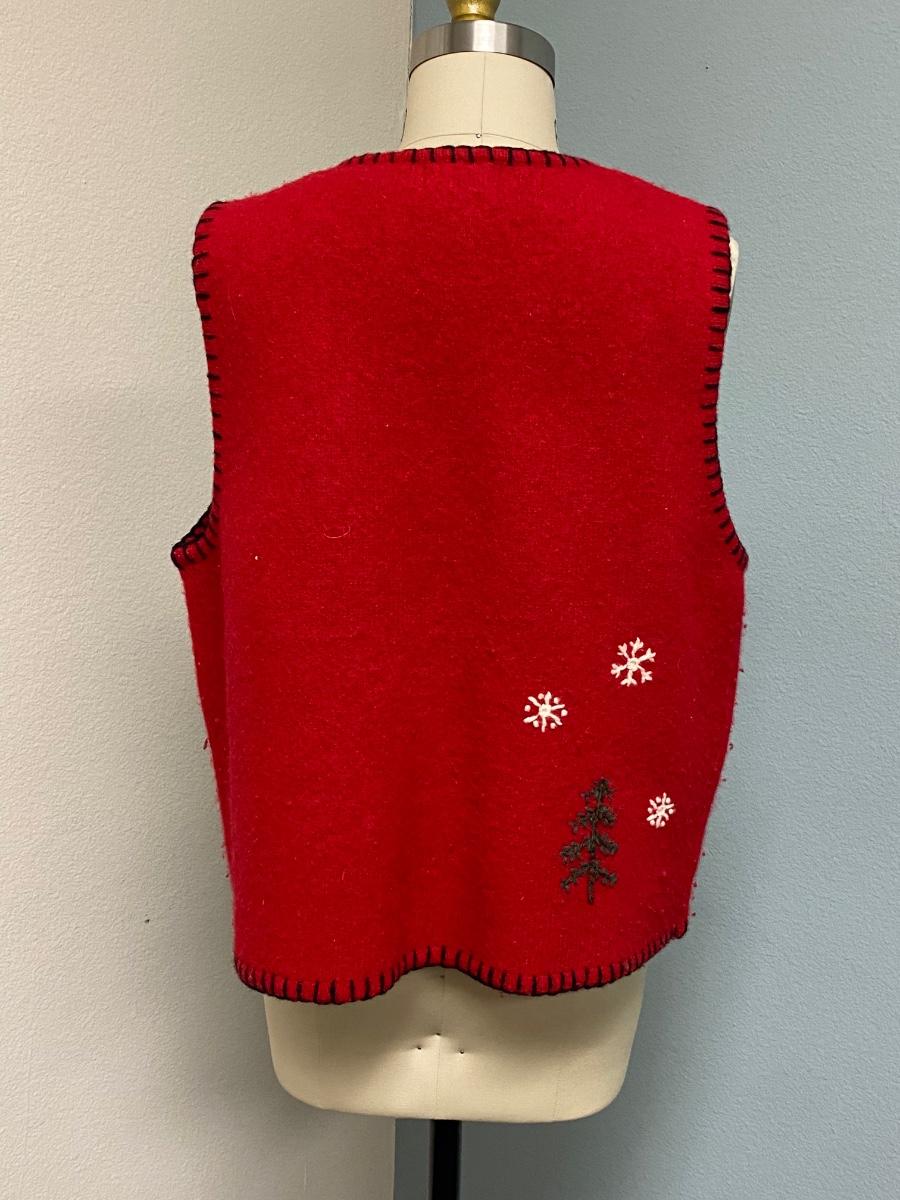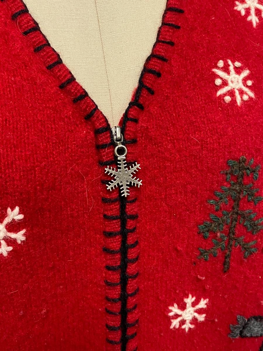 Coldwater Creek Red Christmas Holiday Sweater Vest Zip Front Snowmen