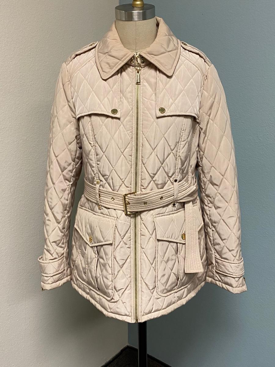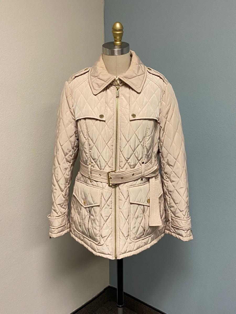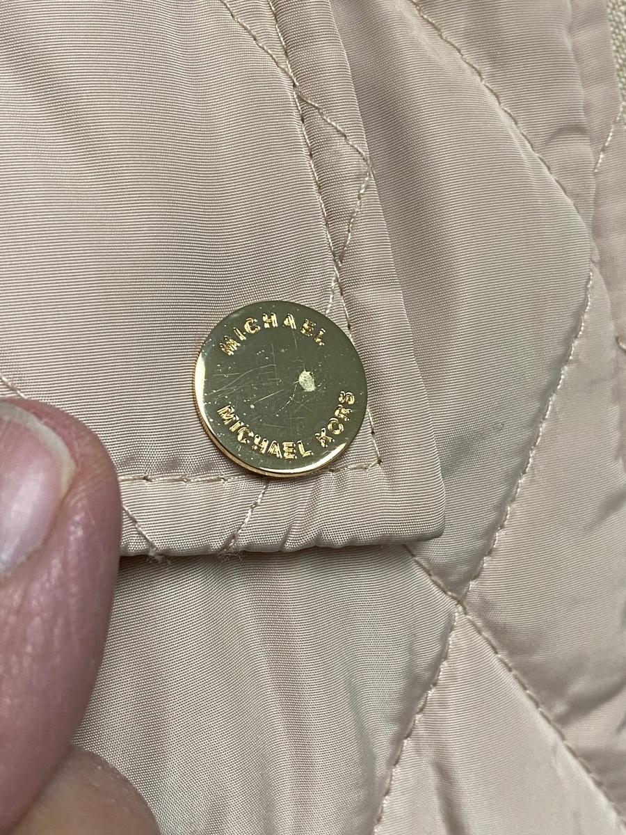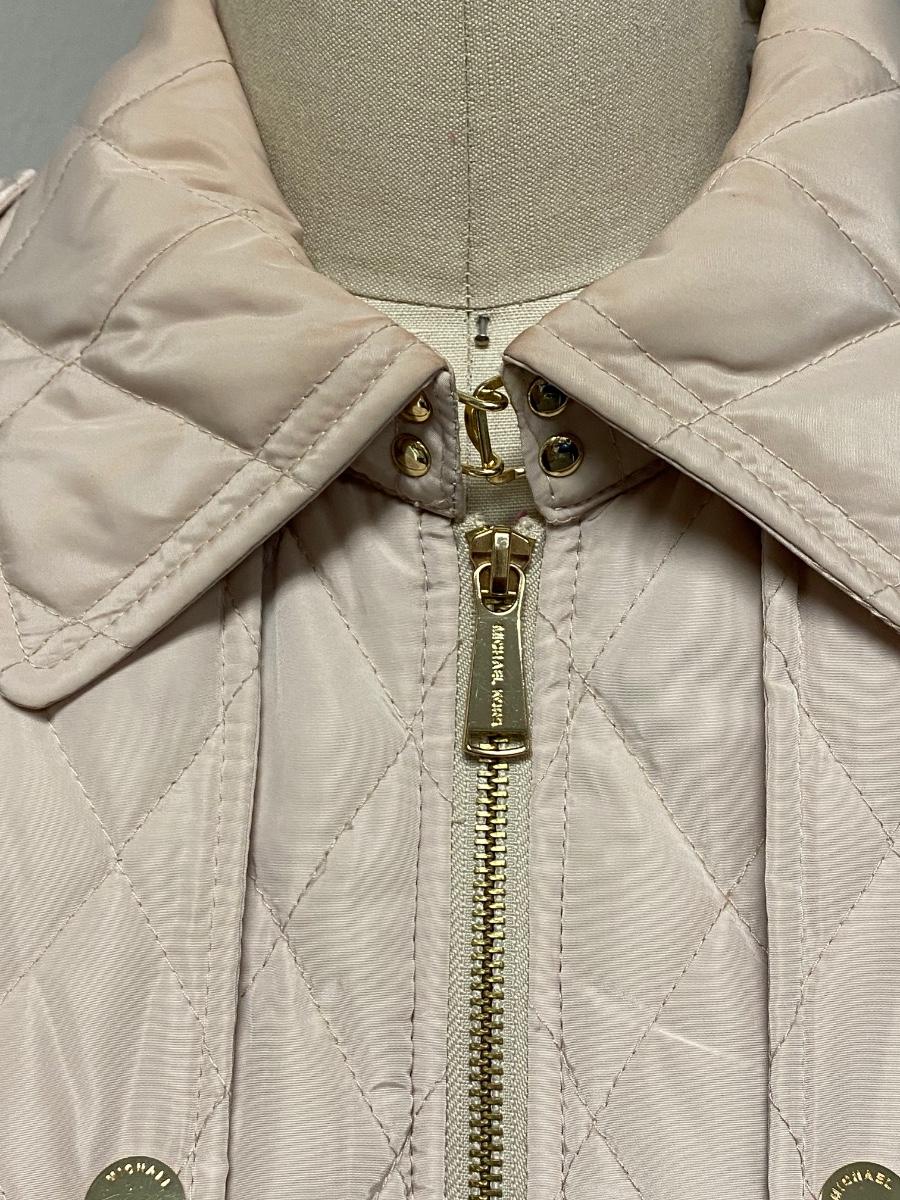 Michael by Michael Kors Quilted Beige Gold Puffy Coat Jacket Size Large. In good condition. Beige with a gold undertone.
