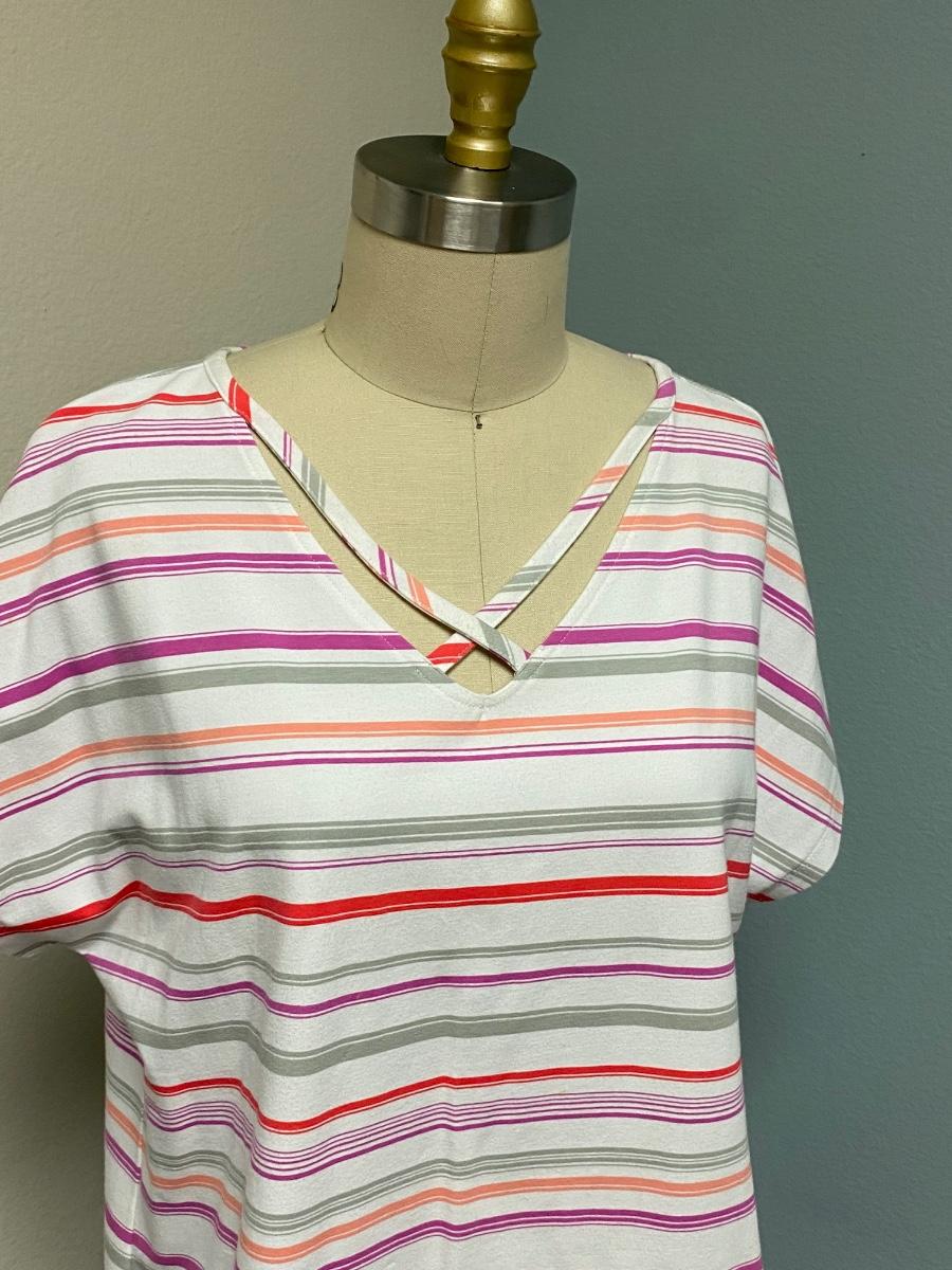 Chico's Zenergy Active Wear White Striped TShirt Top Size 2