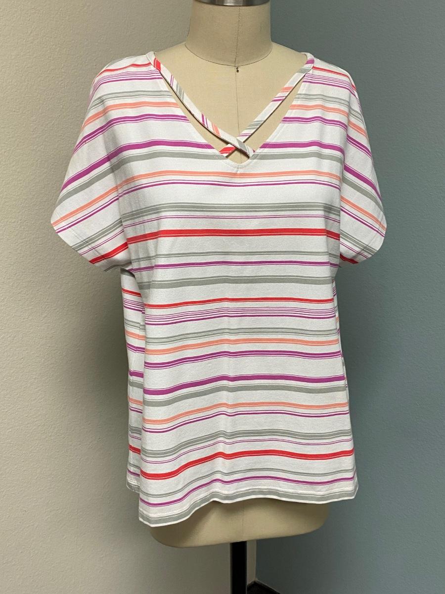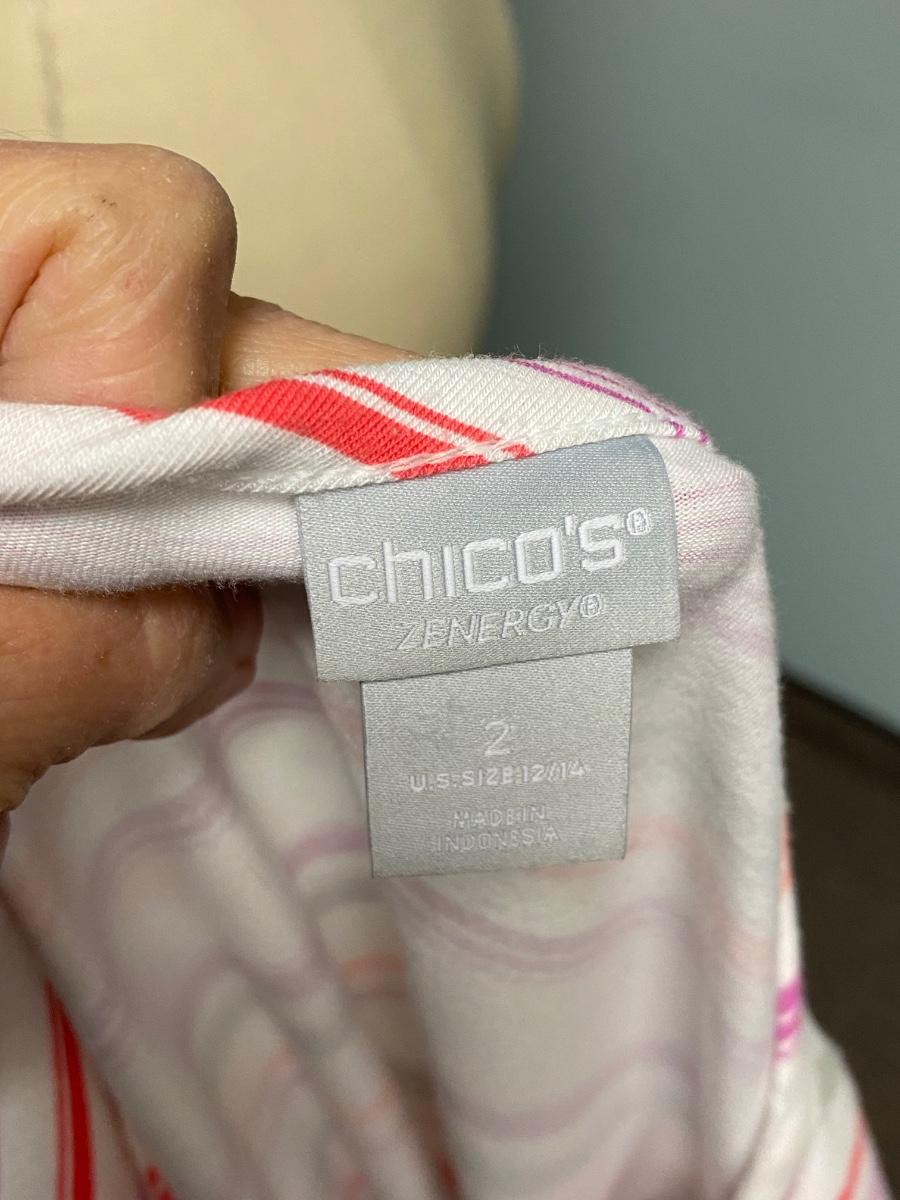 Chico's Zenergy Active Wear White Striped TShirt Top Size 2. In good condition.