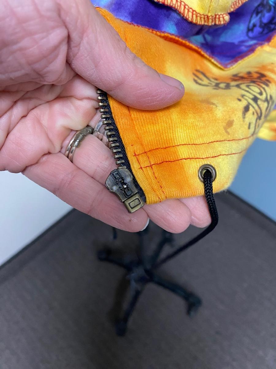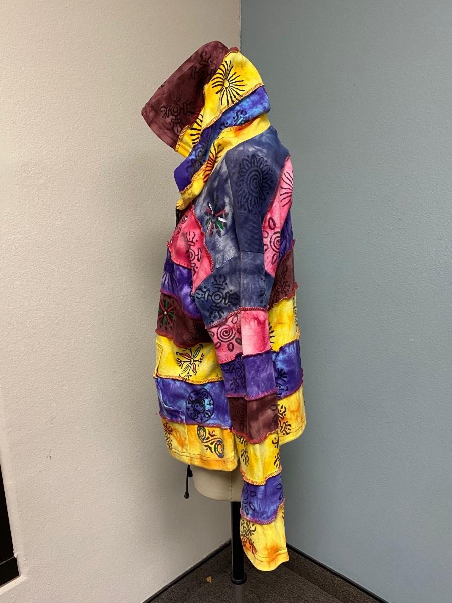 100% Cotton Knit Colorful Patchwork Stripes Hoodie Zipper Jacket. Tag says XXL but it looks to run small.