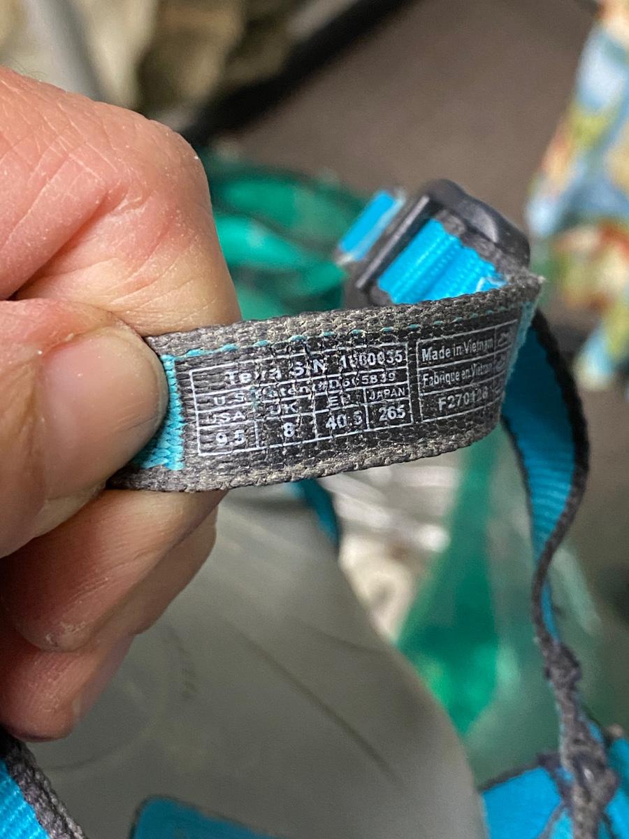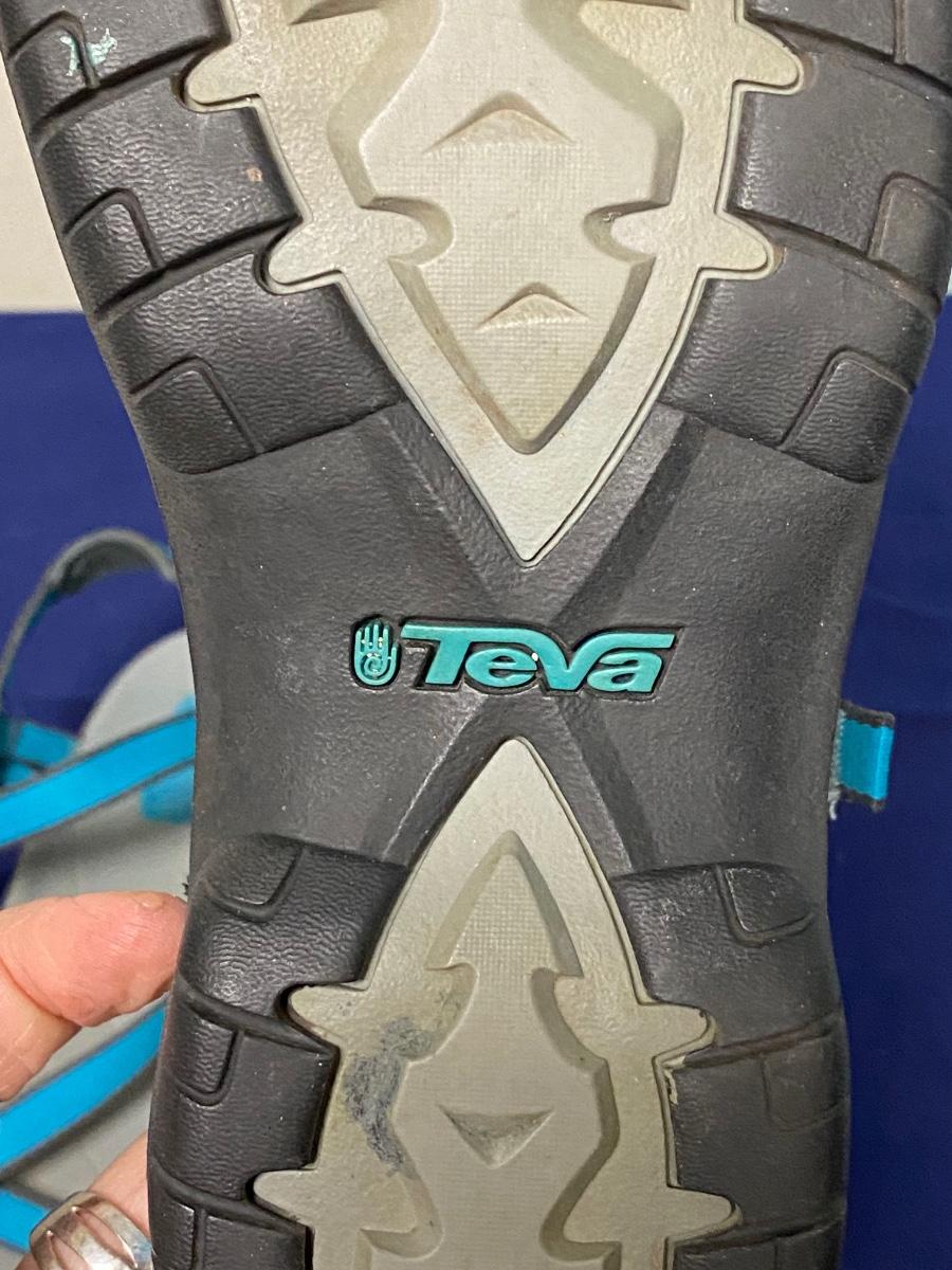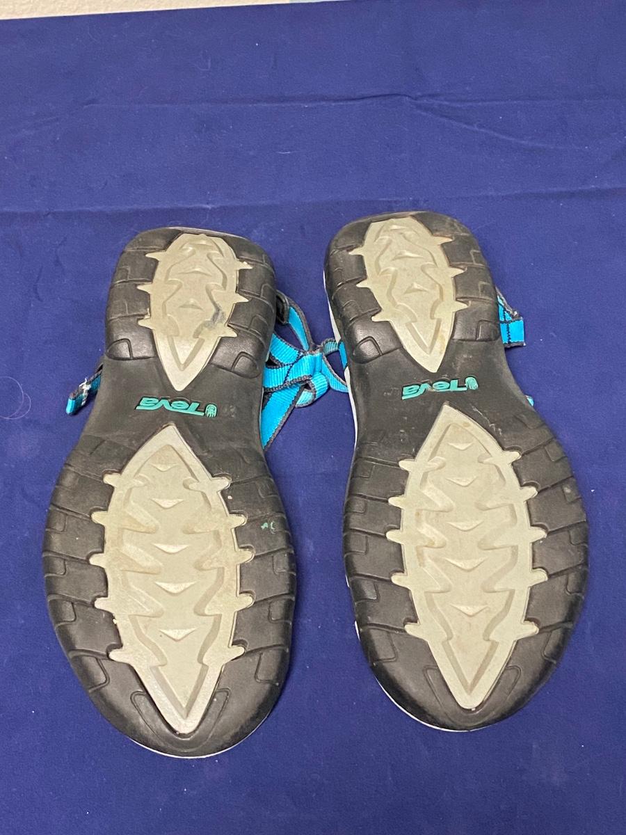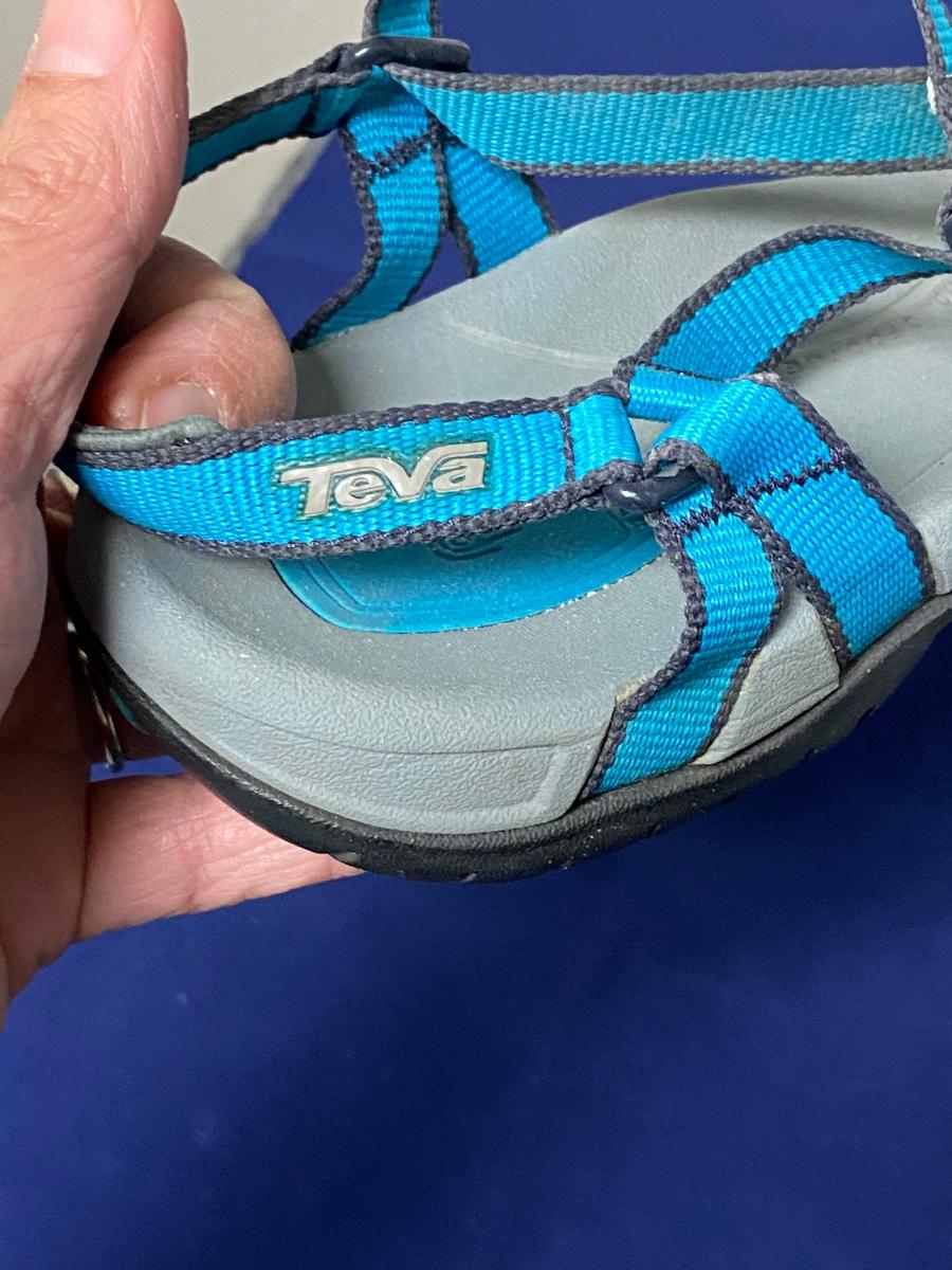 Teva Bright Blue Strap Sandals Beach Shoes Size 9 9.5. One is a 9 and the other 9.5 but they are adjustable so it shouldn't make too much difference. good previously worn condition.