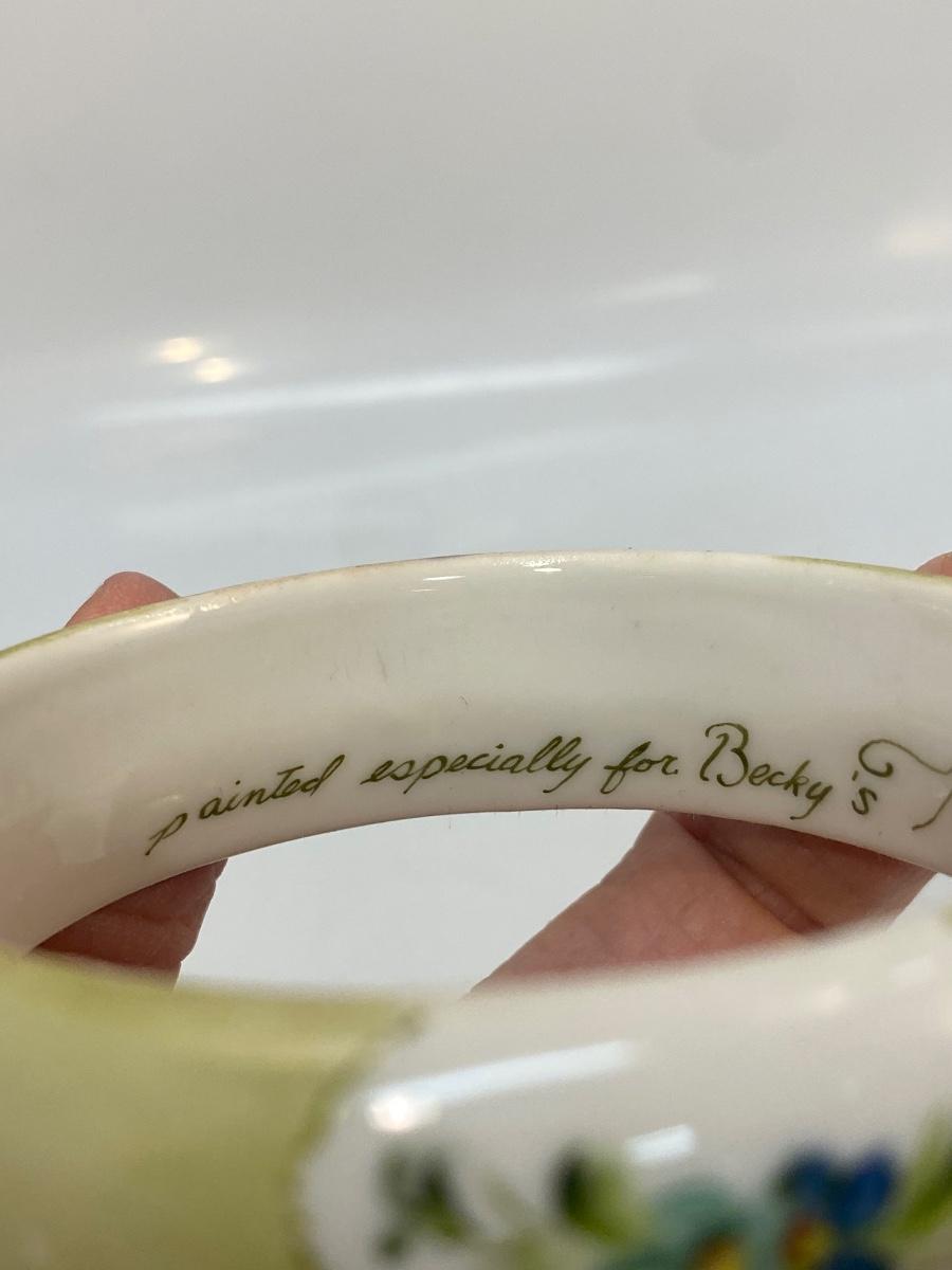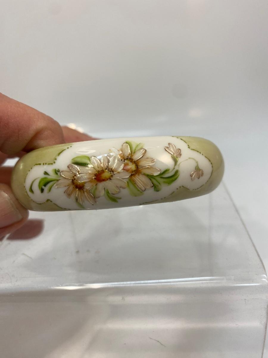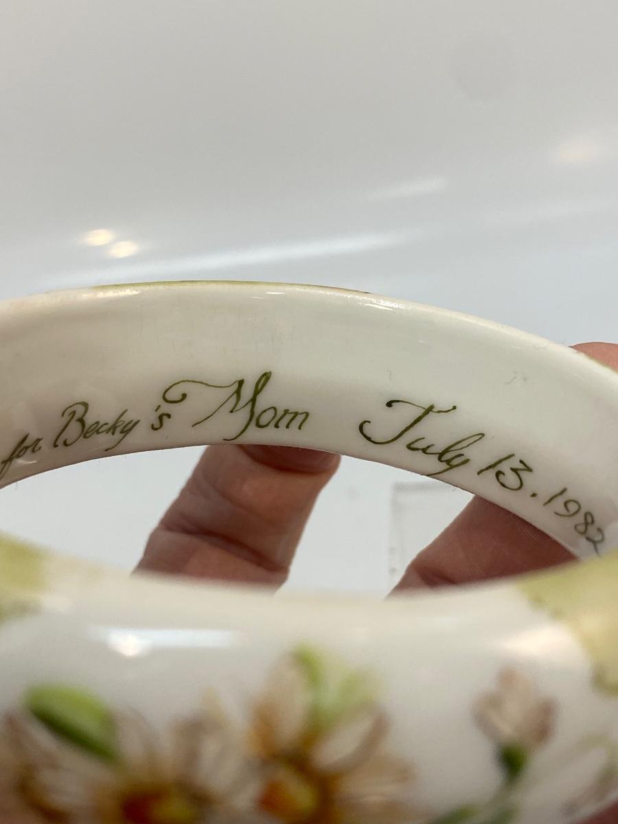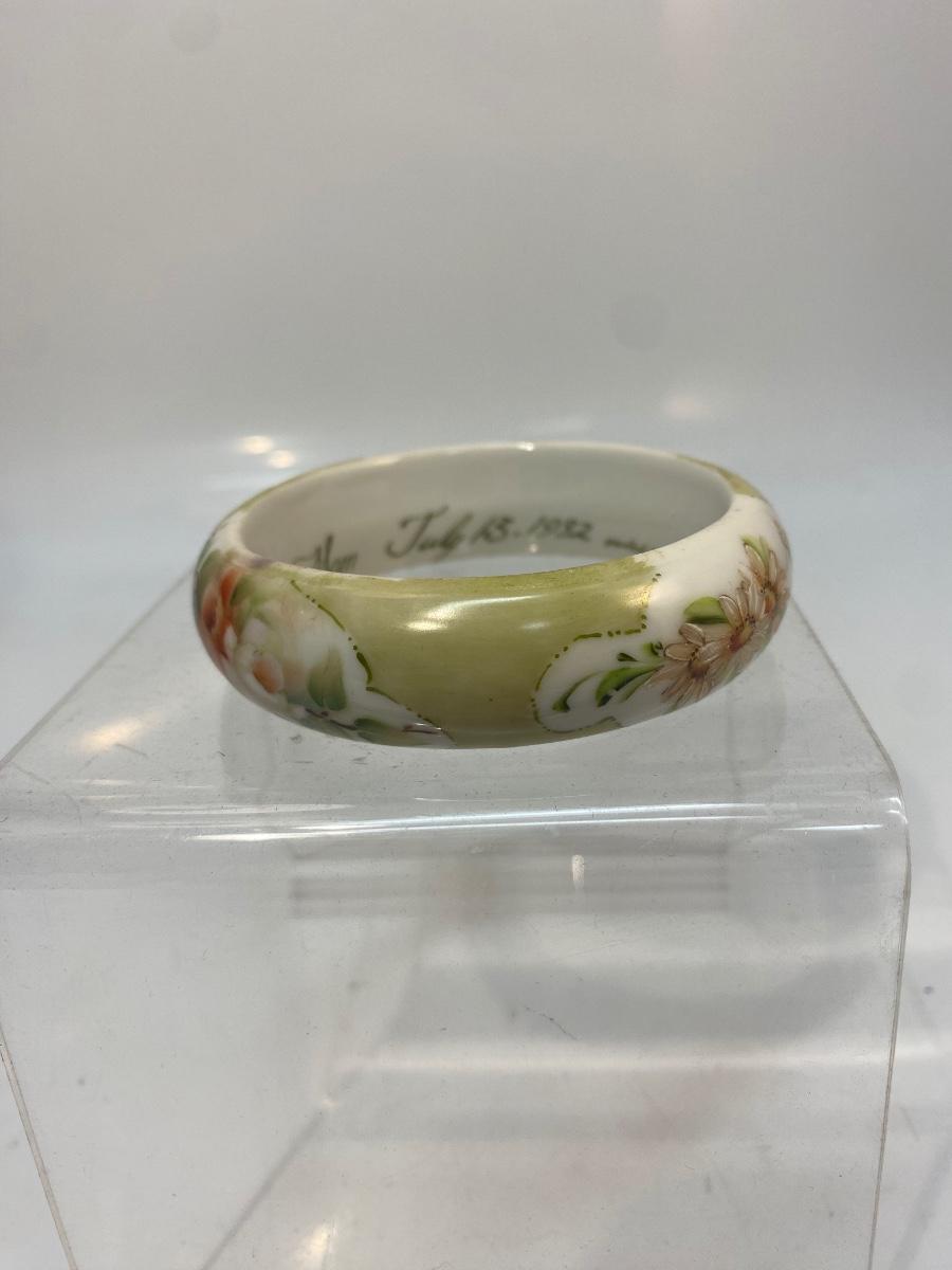 Vintage Hand Painted Floral Pattern Porcelain Bangle Bracelet Inscribed & Dated