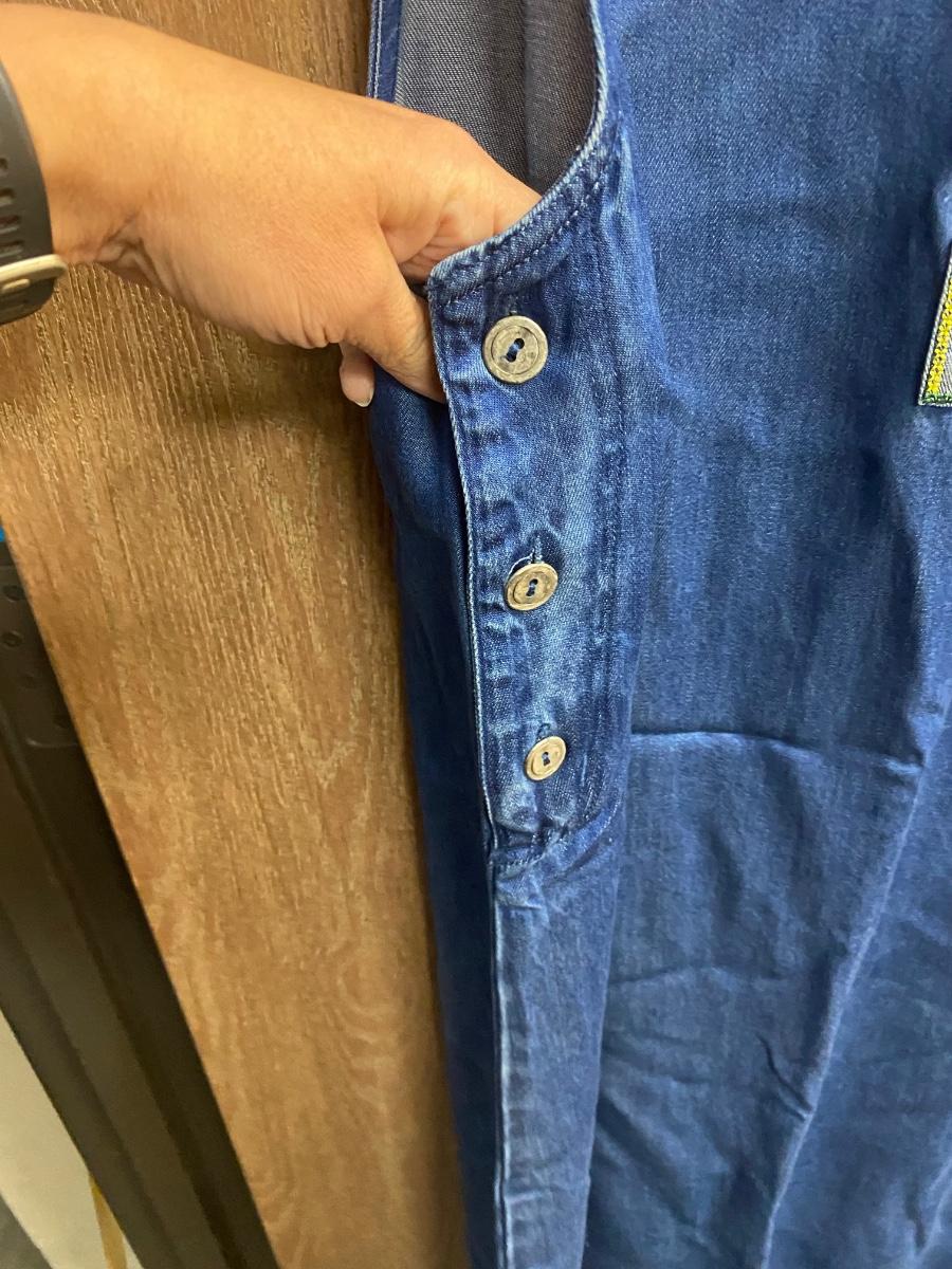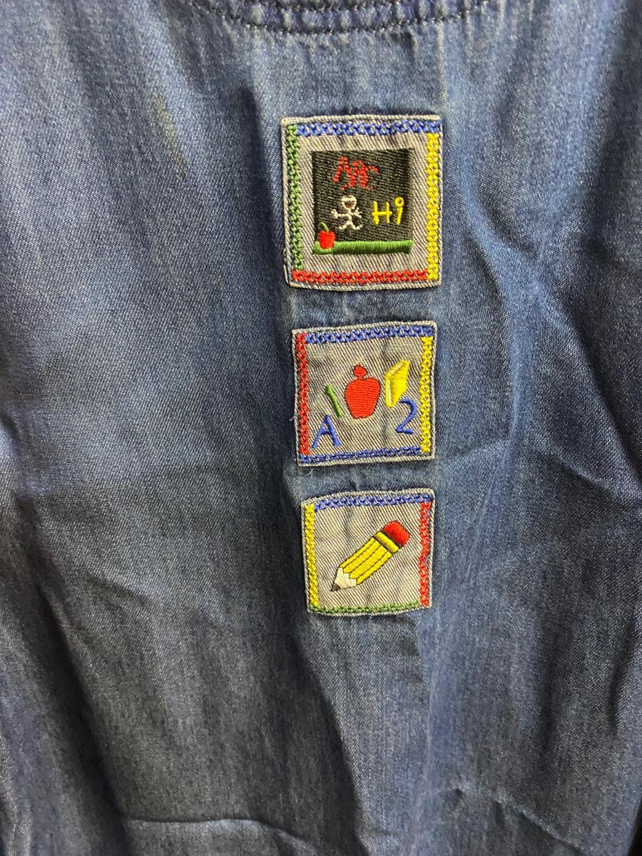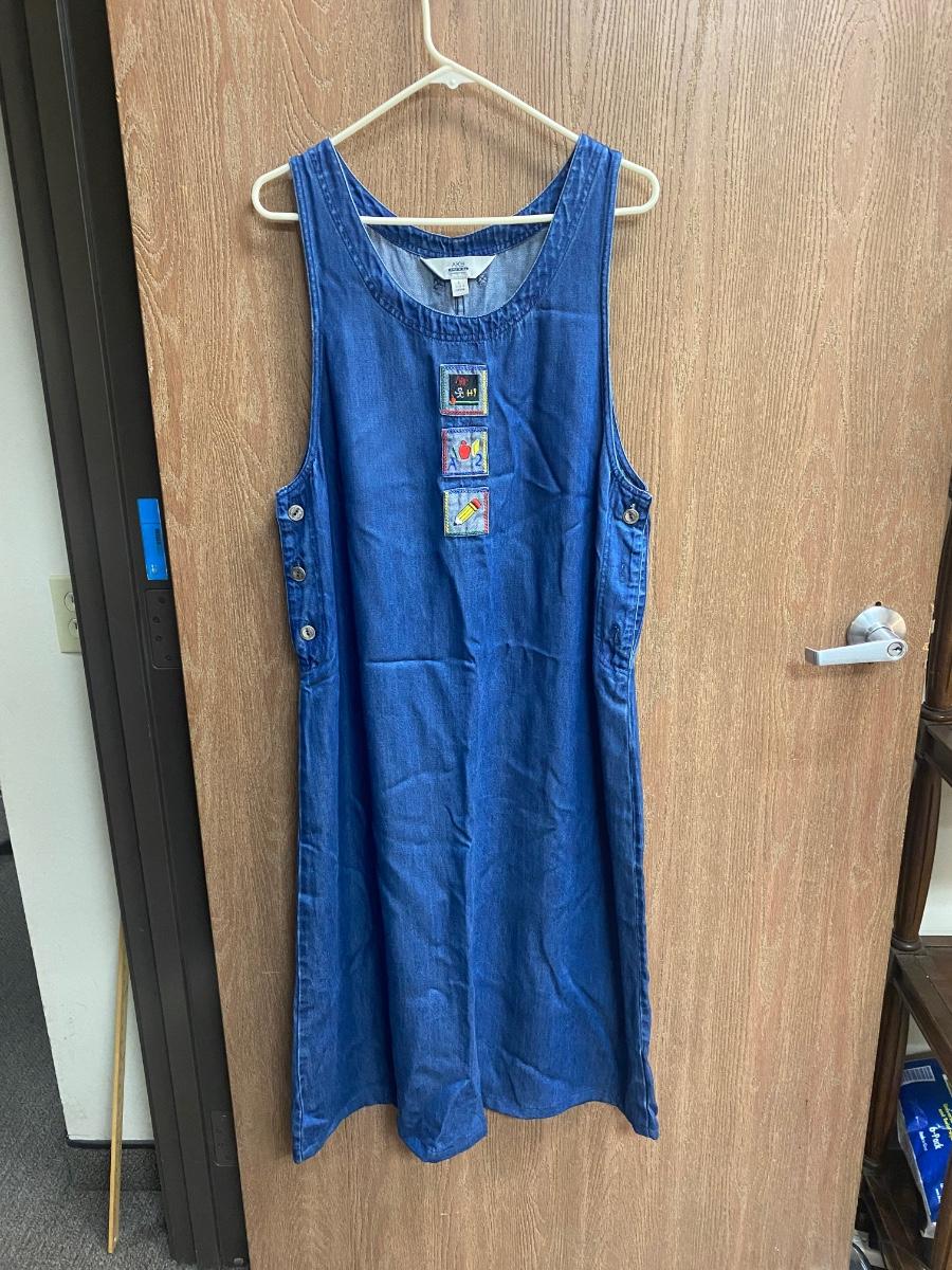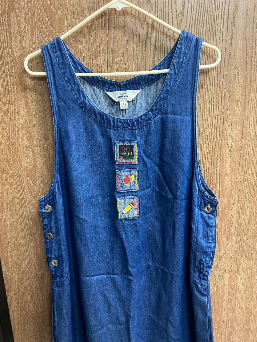 Denim Blue Jean Jumper Dresser School Teacher Embroidery AKS Dresses Size L