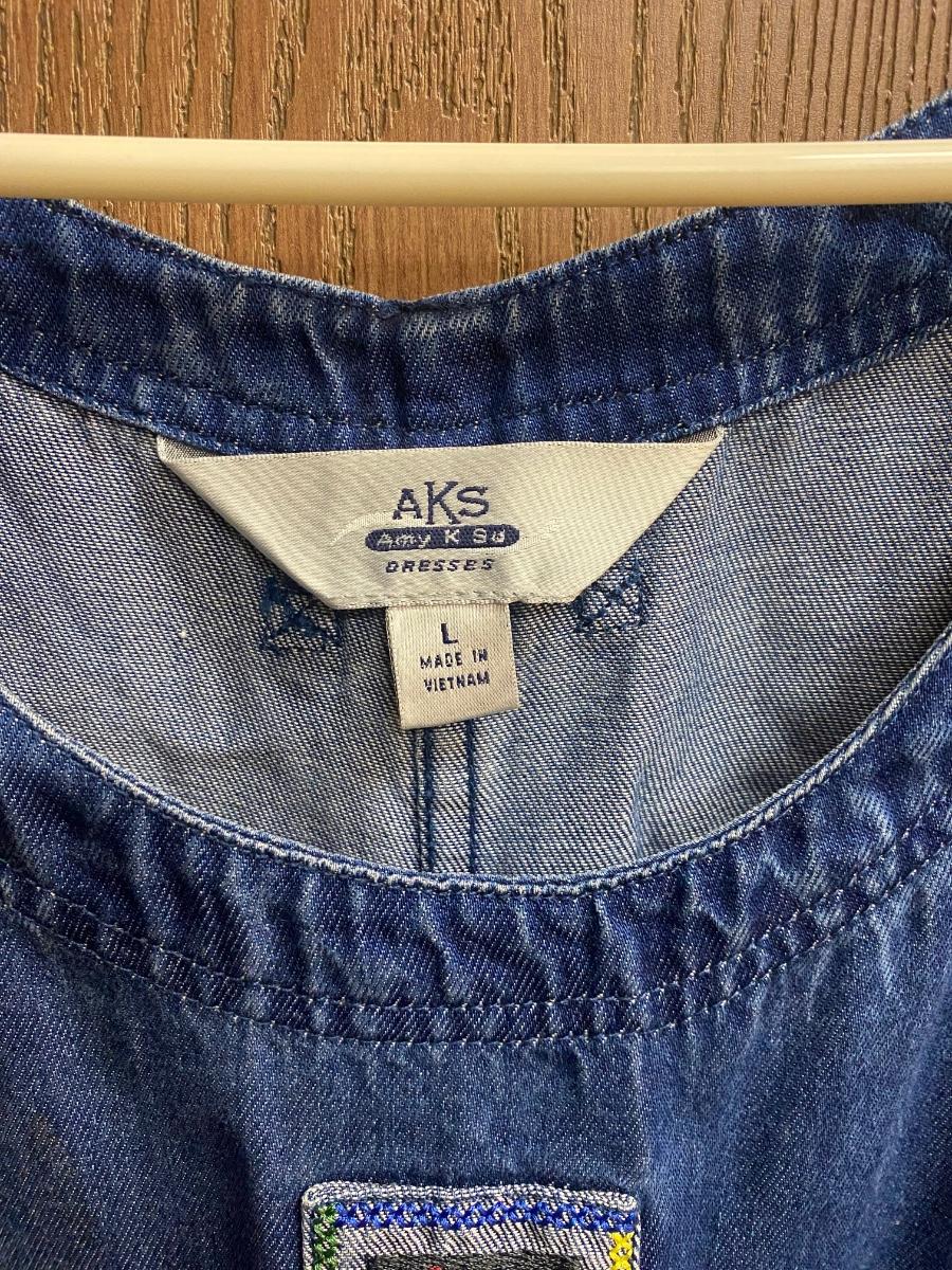 Denim Blue Jean Jumper Dresser School Teacher Embroidery AKS Dresses Size L. In good condition. No pockets.