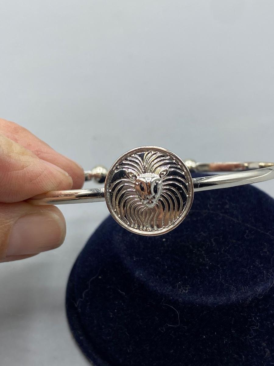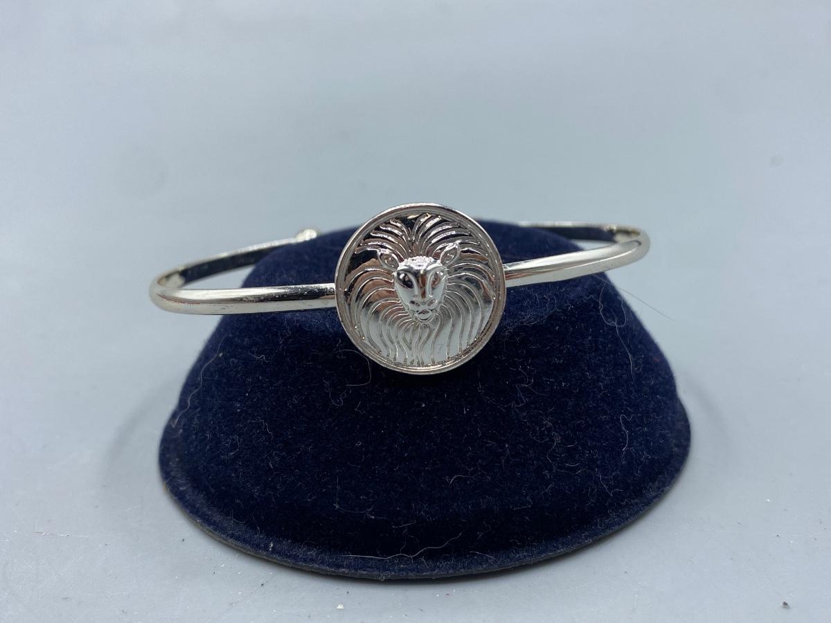 Silver Tone Lion Medallion Cuff Style Adjustable Bracelet